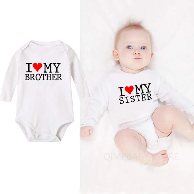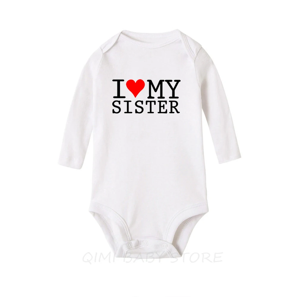 Хлопковое боди для новорожденных мальчиков и девочек с надписью I Love My SisterBrother, комбинезон для близнецов, повседневная одежда с длинными рукавами для малышей