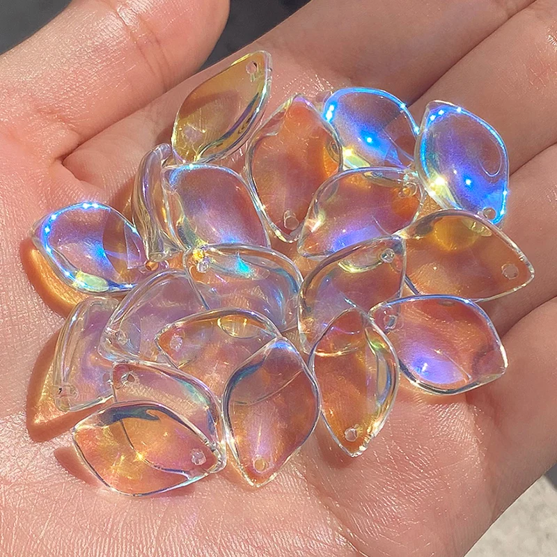 20 шт., бусины с лепестками лилии AB, цветные стеклянные бусины для изготовления украшений вручную, аксессуары сделай сам, бусины из глазури 12x19 мм
