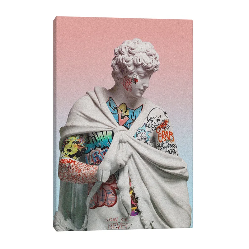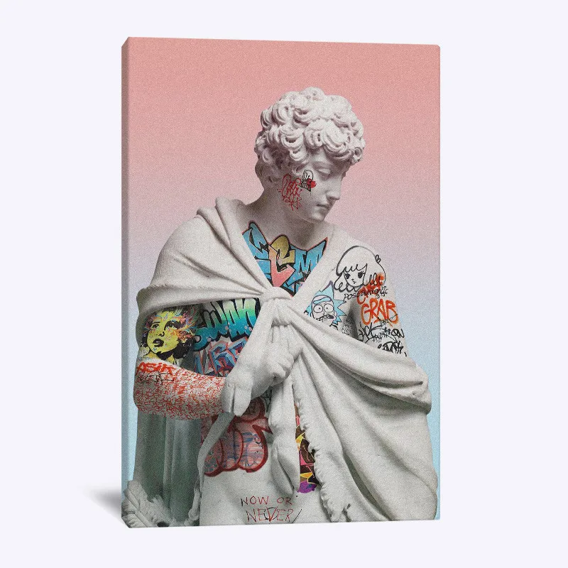 Постеры на холсте с изображением скульптуры Давида, граффити, насте...