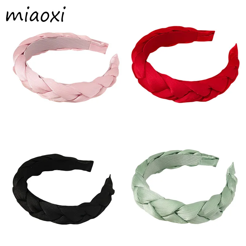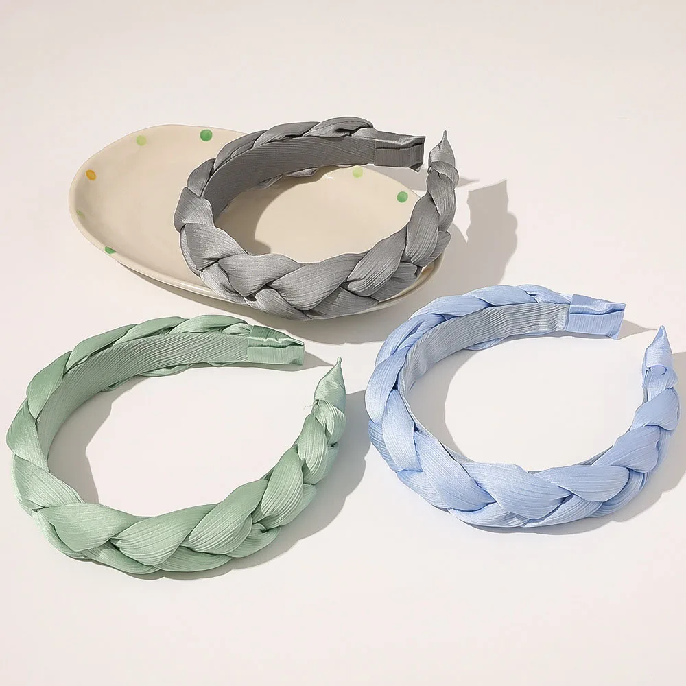 Модная плетеная шелковая повязка на голову, широкая плетеная бокова...