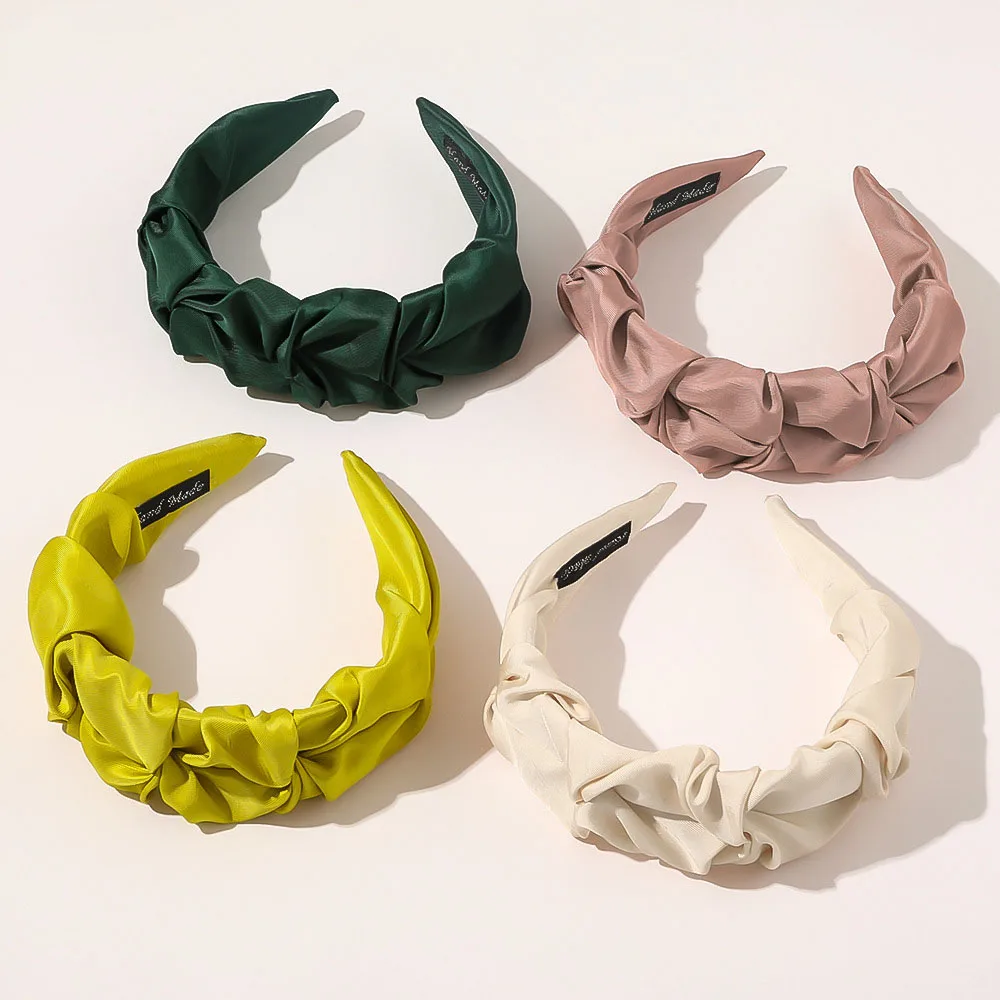 Ободок для волос Женский, повязка на голову с узлом, атласный, Шелк...
