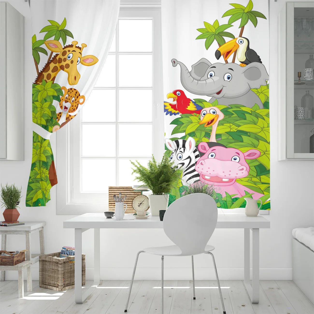 Занавески с животными джунглей, мультяшный жираф, Лев, для детской гостиной, спальни, украшение для дома, подходят для взрослых и детей