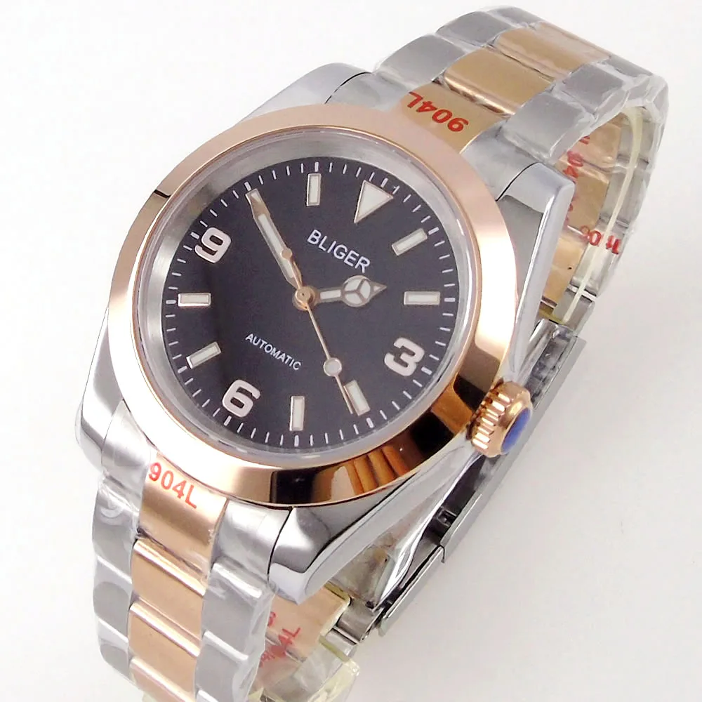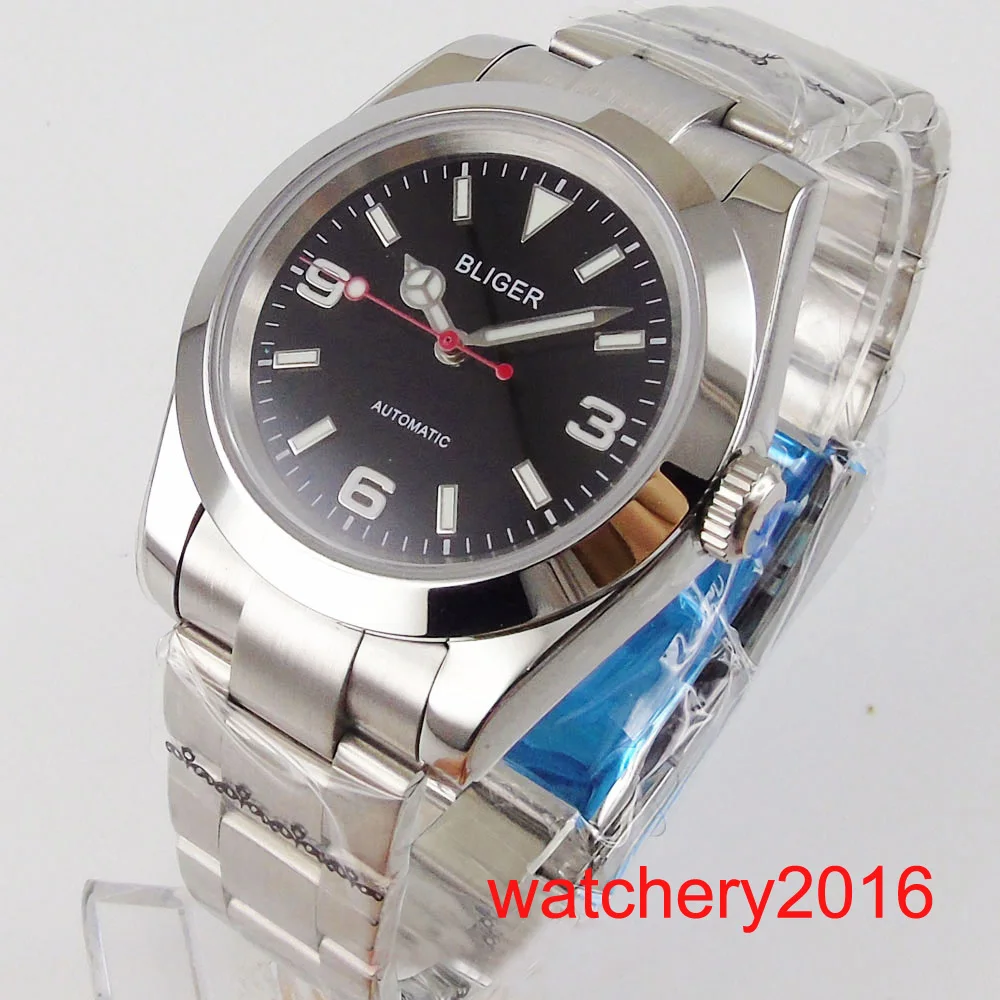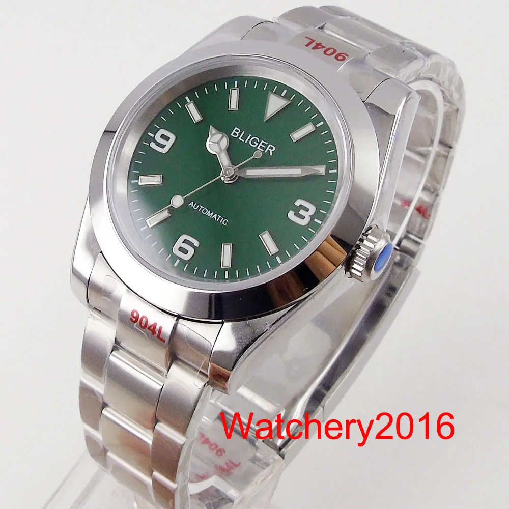 BLIGER 36 мм светящийся циферблат сапфировое стекло полированная рамка NH35 PT5000 MIYOTA 8215 автоматический механизм мужские часы браслет-устрица