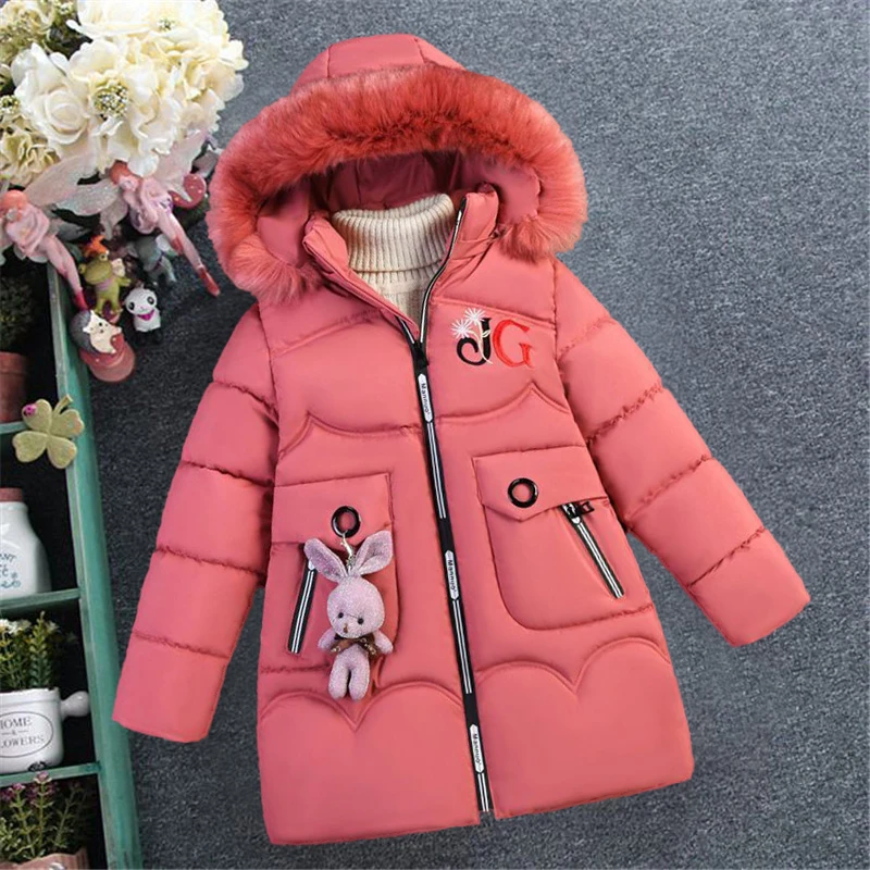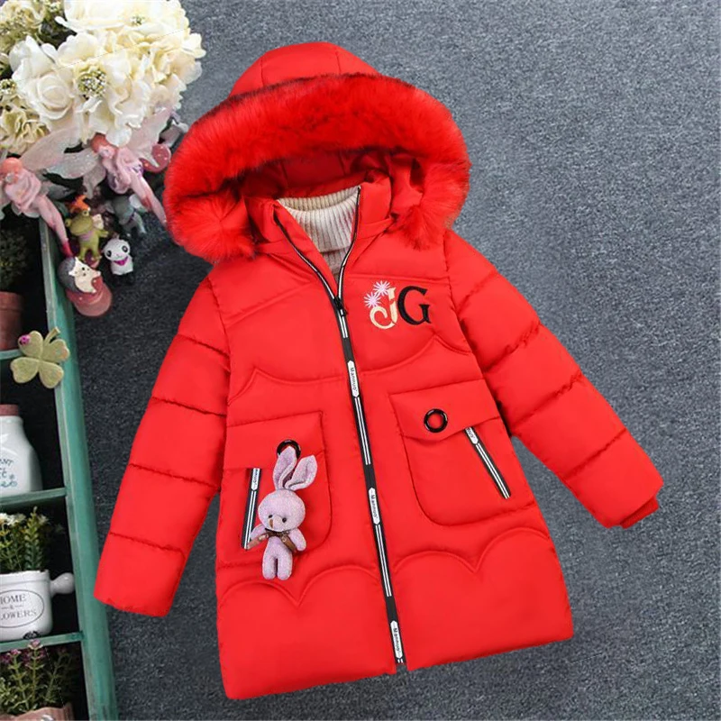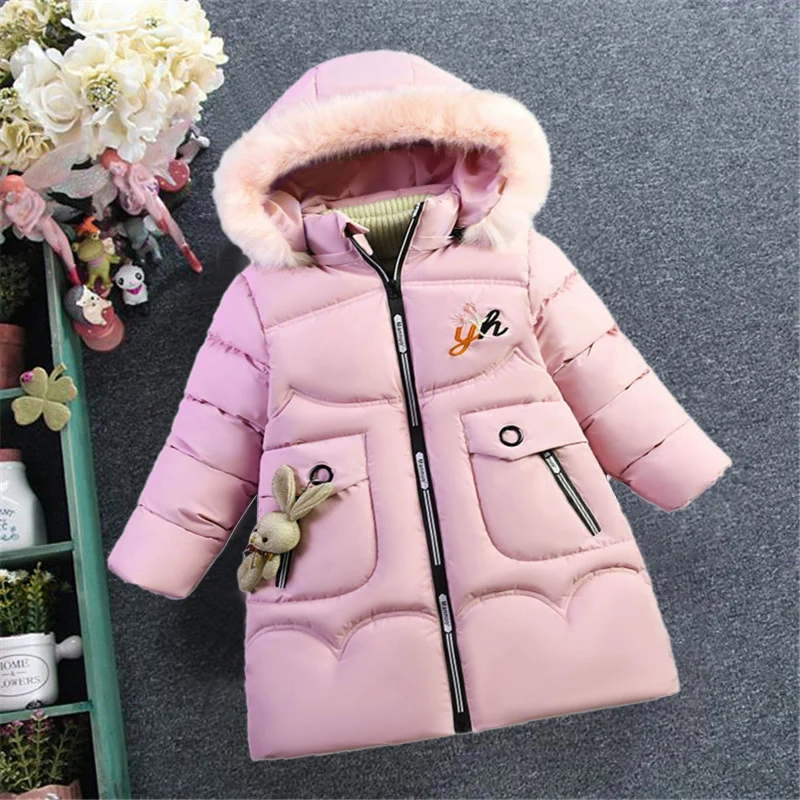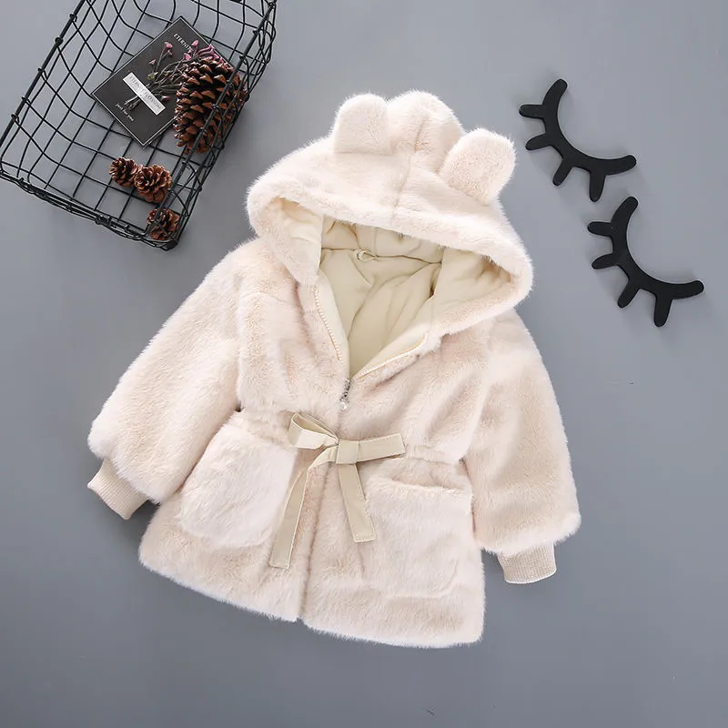 Детское меховое пальто, для девочек, зимний теплый шерстяной свитер с большими ушками, стеганое хлопковое пальто