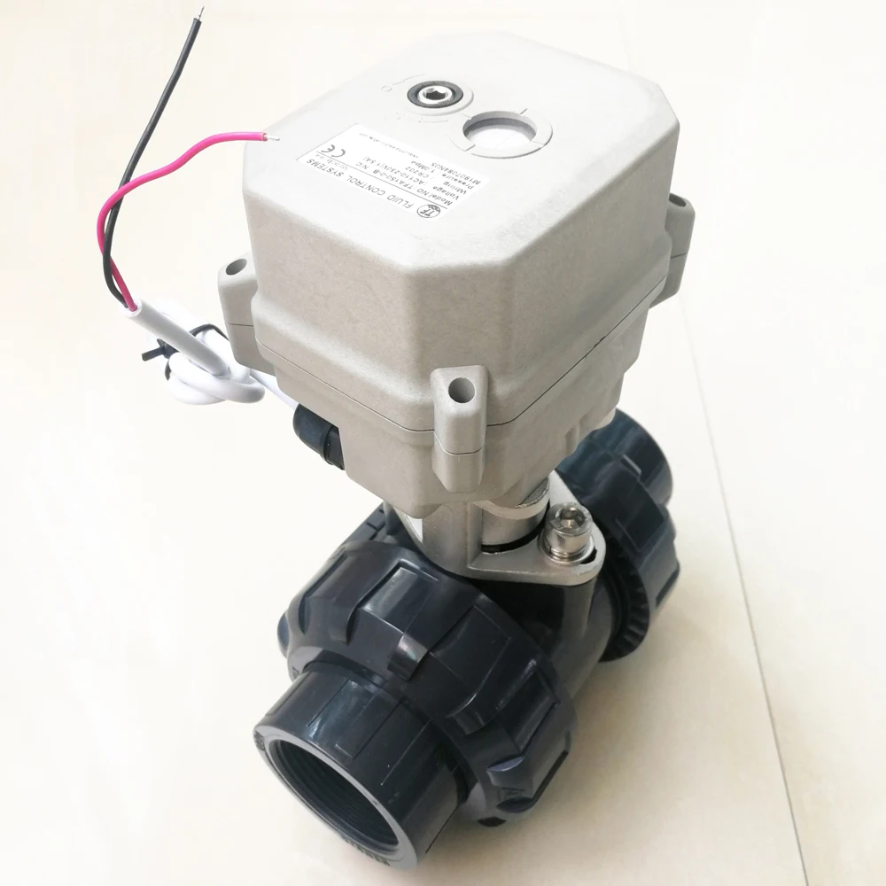 2 варианта ПВХ DN40 моторизованный шаровой клапан BSPNPT 1-12 ''347 провода AC110-230V с 15Nm привод с ручным управлением