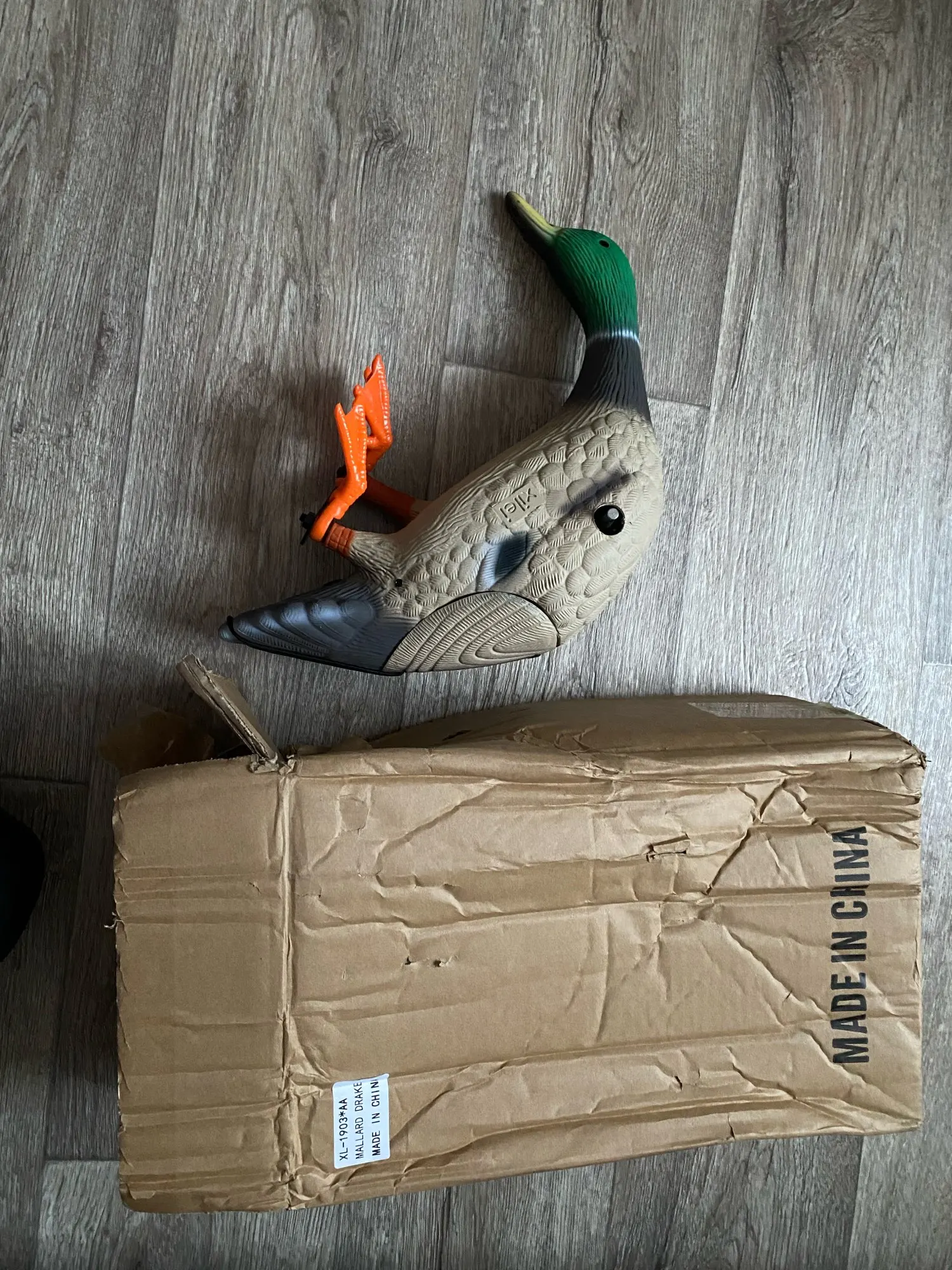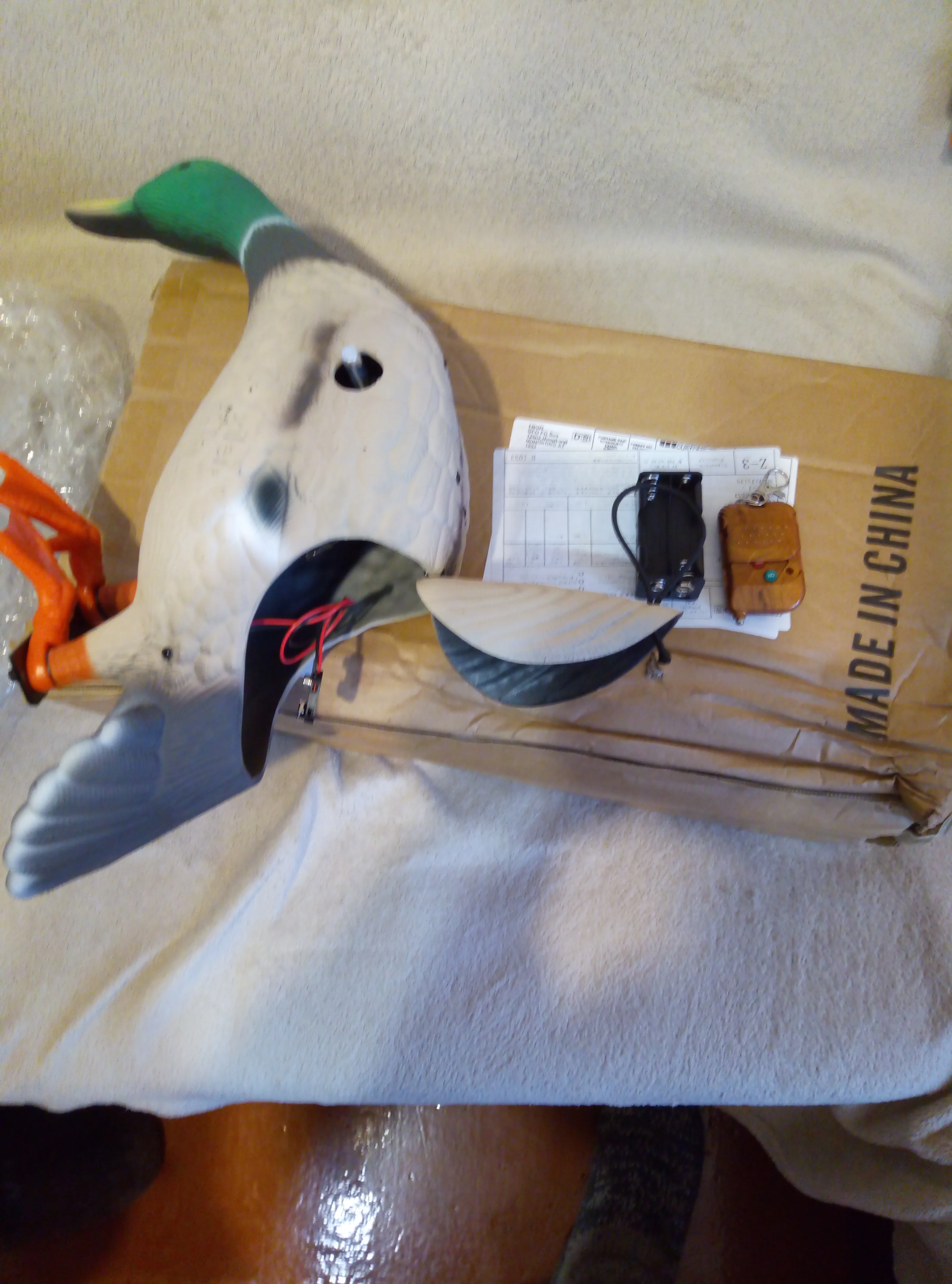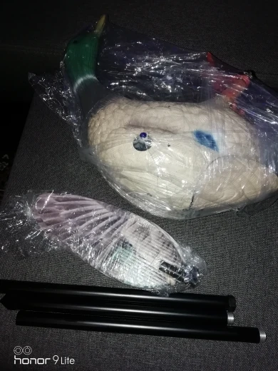 Качественная утка, хорошая цена, крепкая коробка, хороший продавец но экономит на скотче, коробка пришла открытой (смотрите фото) по дороге потерялись крылья и металлическая подставка, отдельно только крылья у этого продавца стоят 14,99$, отрыл спор, жду результата, о решении спора напишу позже.