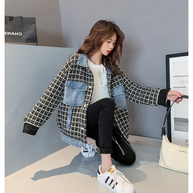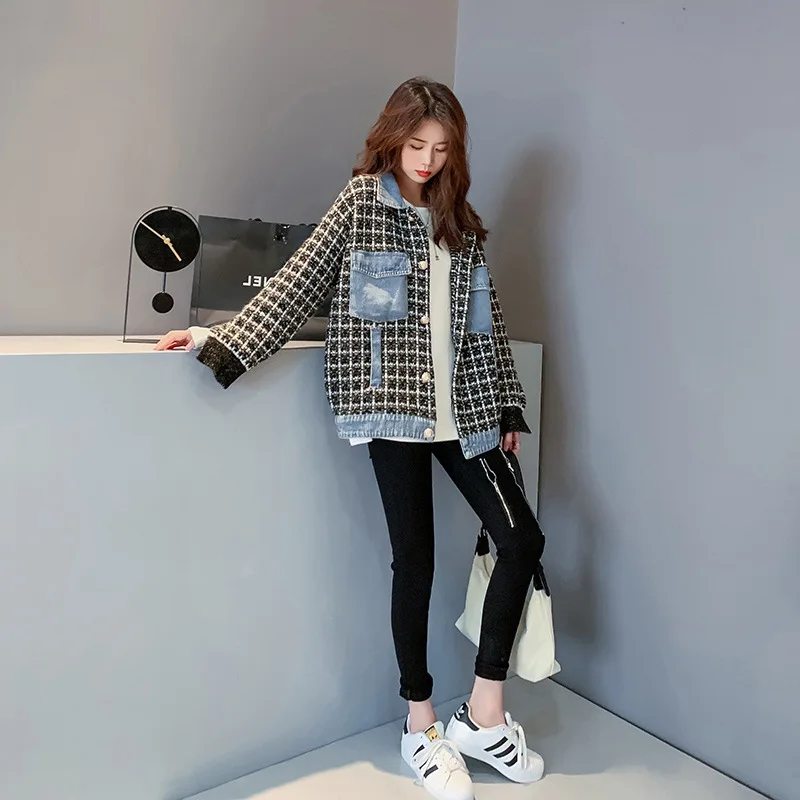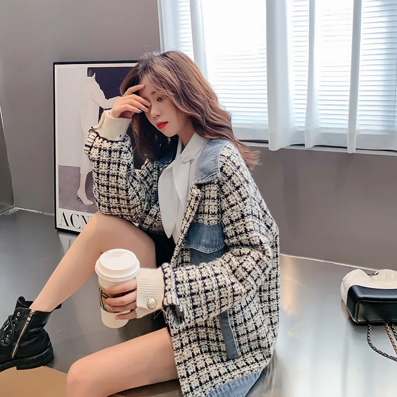 Женская джинсовая куртка SuperAen, свободная повседневная куртка с отложным воротником в Корейском стиле, Осень-зима 2020