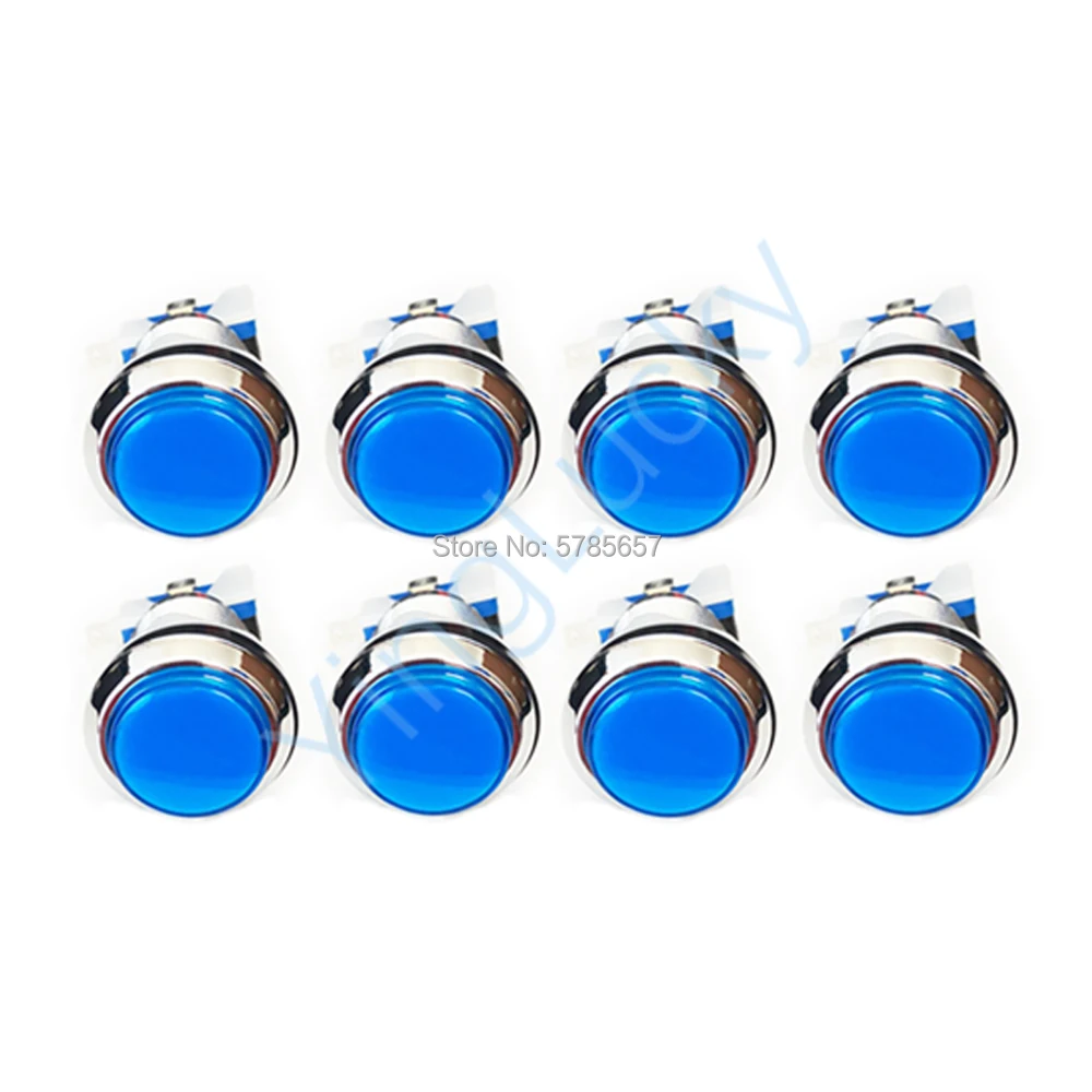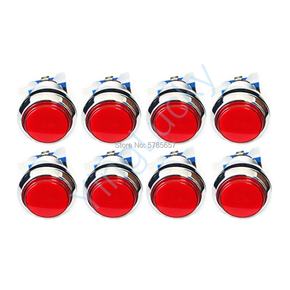 8 шт. 12 В аркадная кнопка со светодиодной подсветкой 33 мм хромированная кнопка с микропереключателем, запчасти для аркадных игр Mame Jamma
