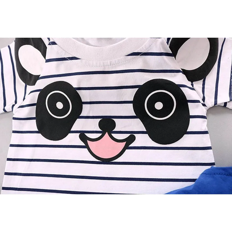 Летние Комплект одежды для маленьких мальчиков с мультипликационным принтом панда, футболка с короткими рукавами и комбинезон, комплект одежды из 2 предметов, детский спортивный костюм, костюм для От 1 до 4 лет