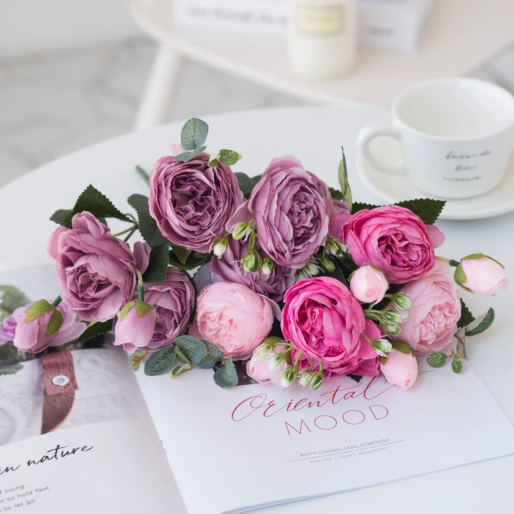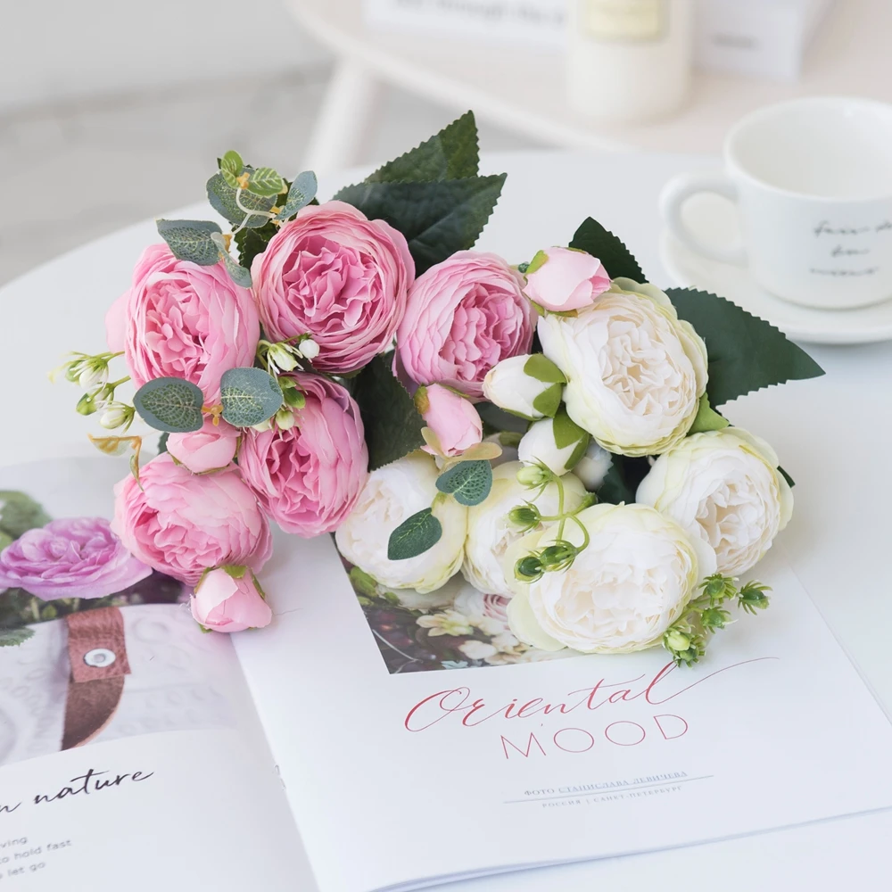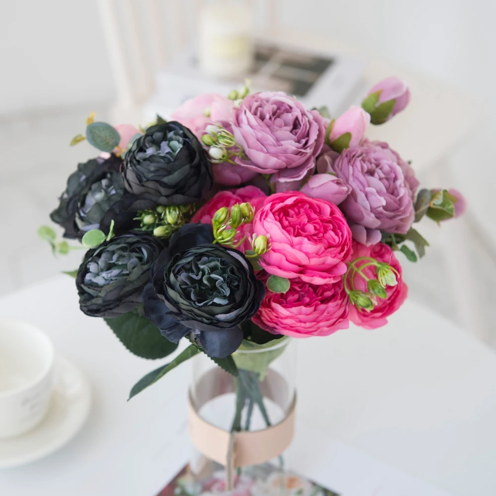 Искусственные цветы, красные шелковые пионы, розы, вазы для домашнего декора, невесты, свадебные аксессуары, букеты, подарки сделай сам, розовые Искусственные растения