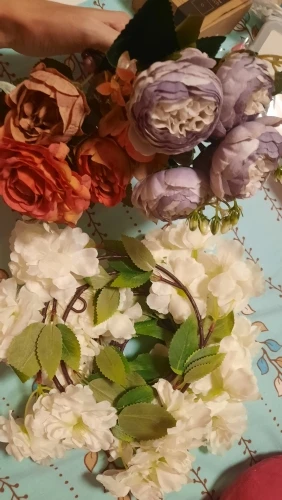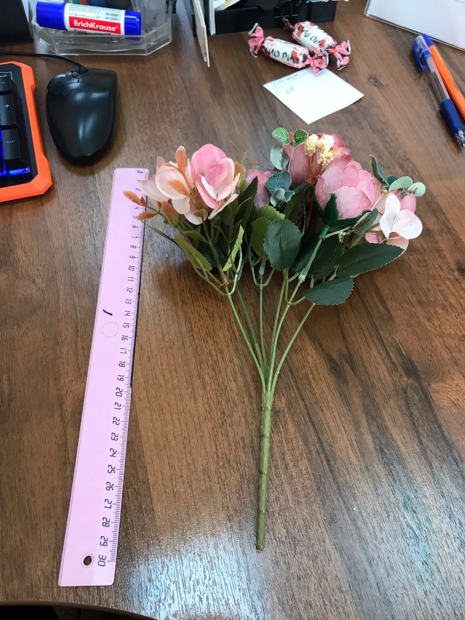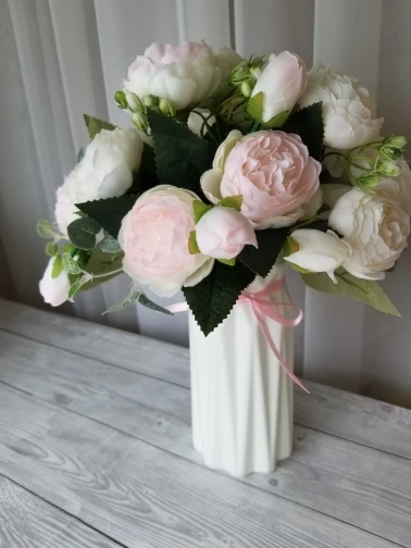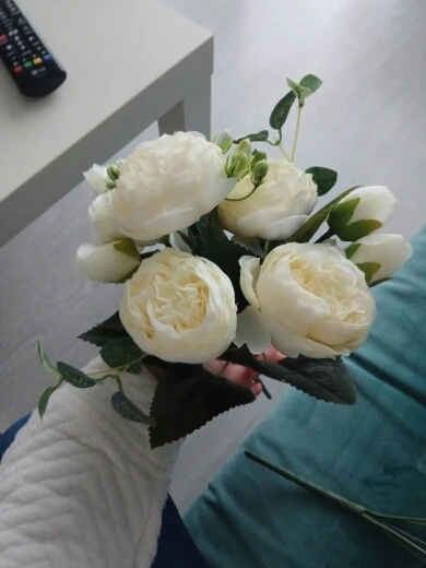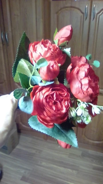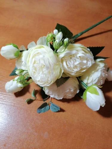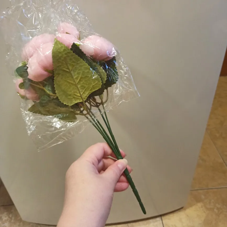 Хорошие цветы, все как в описании. Одного букета естественно мало, сразу видно что искусственные. У меня в составе 4 букета разных цветов. Белые от другого продавца. Заказ пришёл быстро, совместно с заказами от других продавцов. Посылка отслуживалась. С продавцом не общалась.