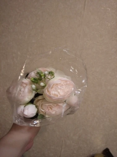 Оплатила 14.10, получила 18.11, неотслежка. Очень красивые цветы. Похожи на чайные розы. До этого покупала в этом магазине пионы, если честно, то они мне понравились больше (букетик выглядит гуще за счёт пучков мелких бутонов и листочков). Но розы тоже очень хороши. Спасибо продавцу за эту красоту! Роста продаж!