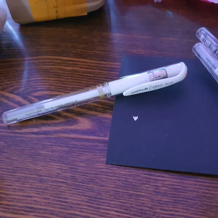 Самая плотная белая ручка из всех, беру не в первый раз. Перекрывает все почти как акрил.