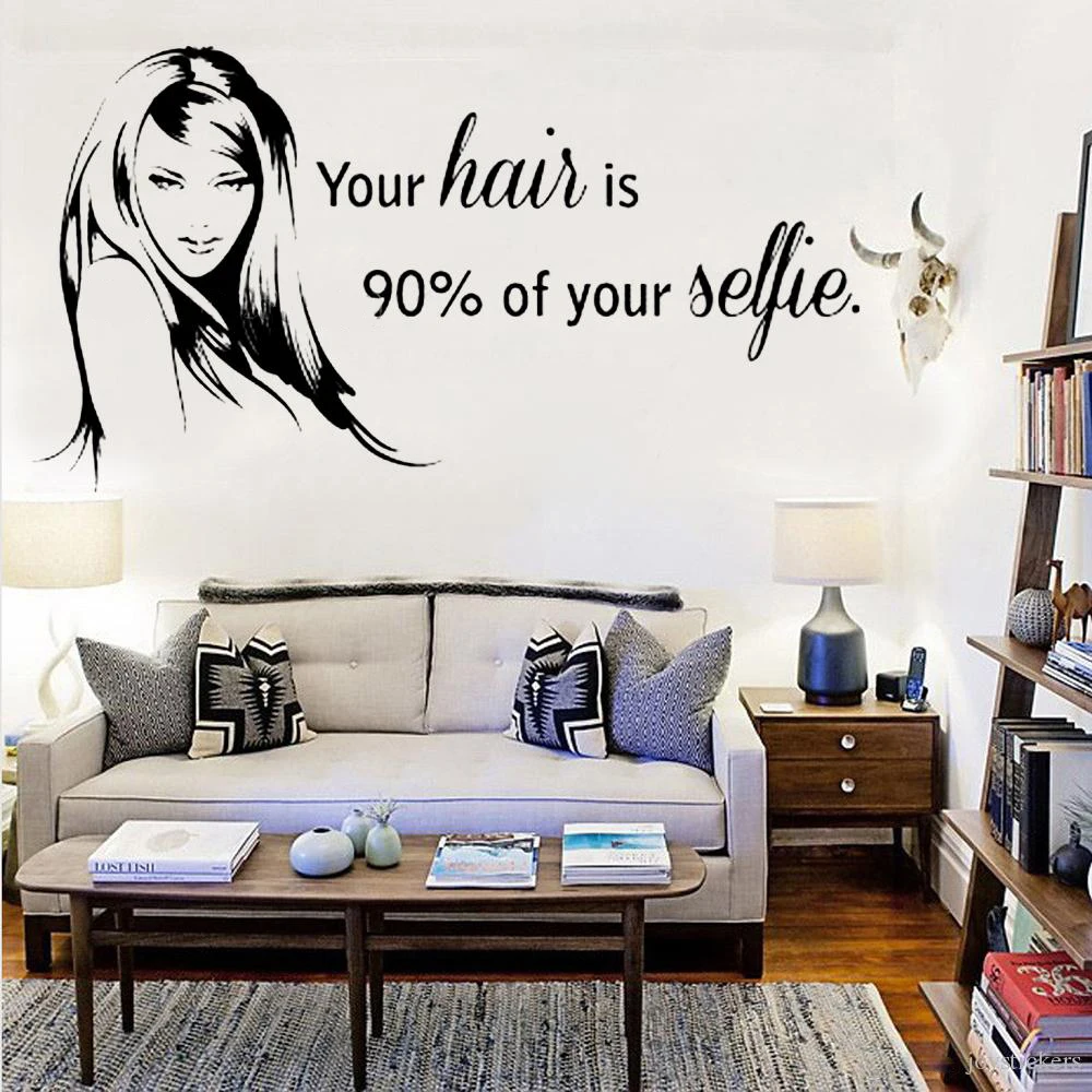Красивые Красота волос салон наклейка Настенный декор окна Стикеры ...