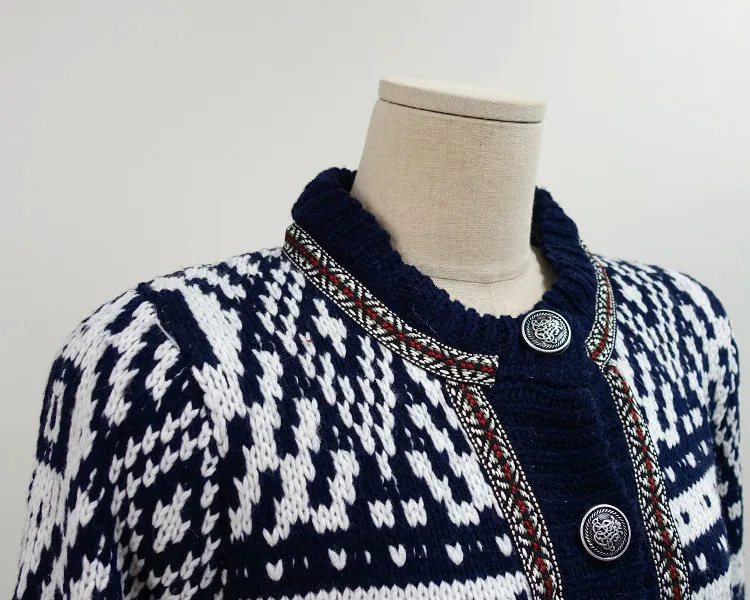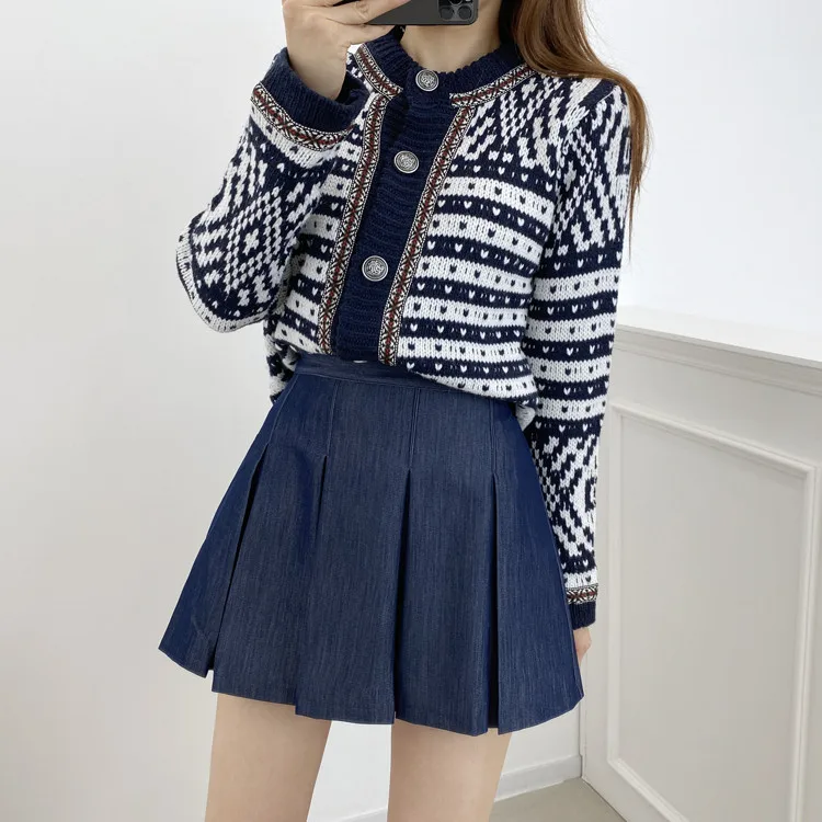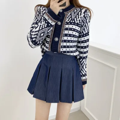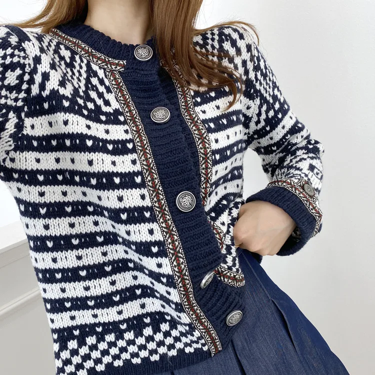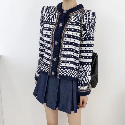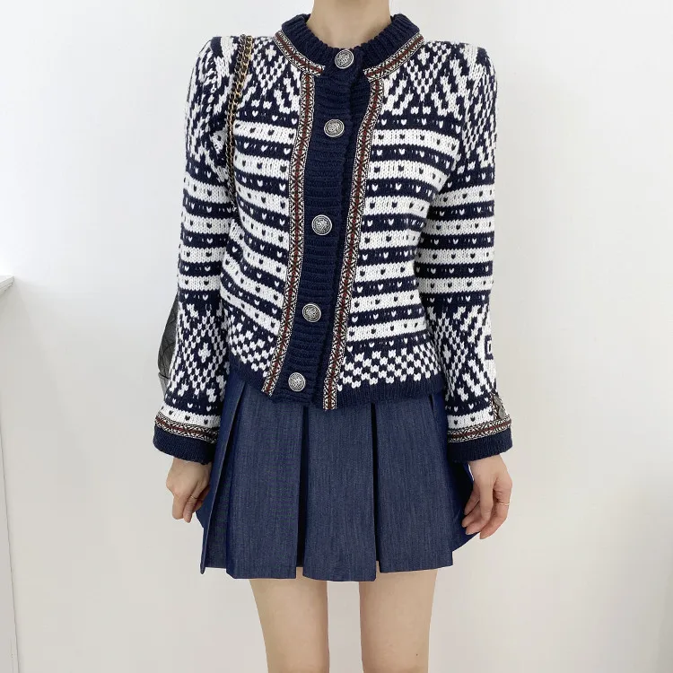 Женский трикотажный кардиган, винтажный однобортный свитер с геометрическим рисунком и длинным рукавом, осень 2020