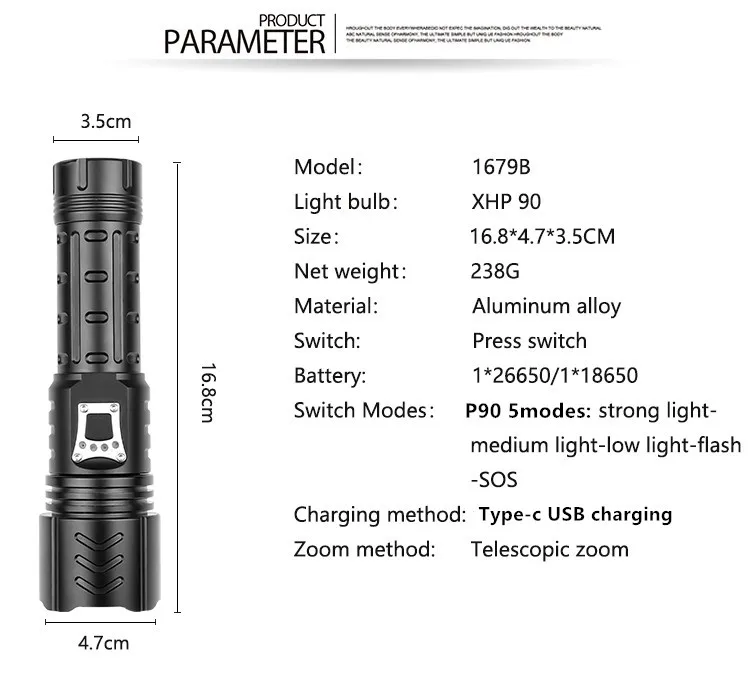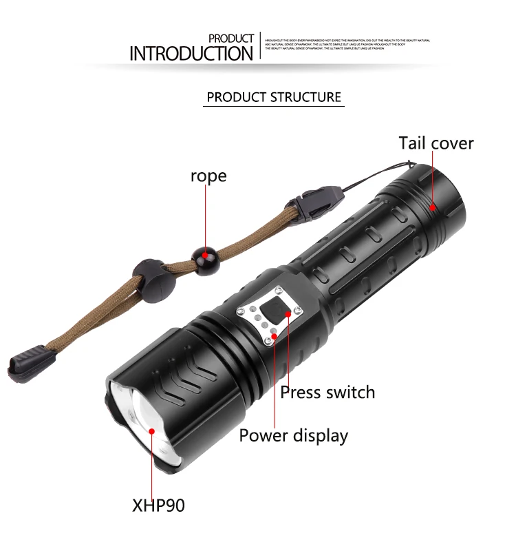 Супер яркий светодиодный фонарик XHP90, перезаряжаемый от USB фонарик, фонарик с фокусировкой, Тактический фонарик, фонарик с внешним аккумулятором 26650