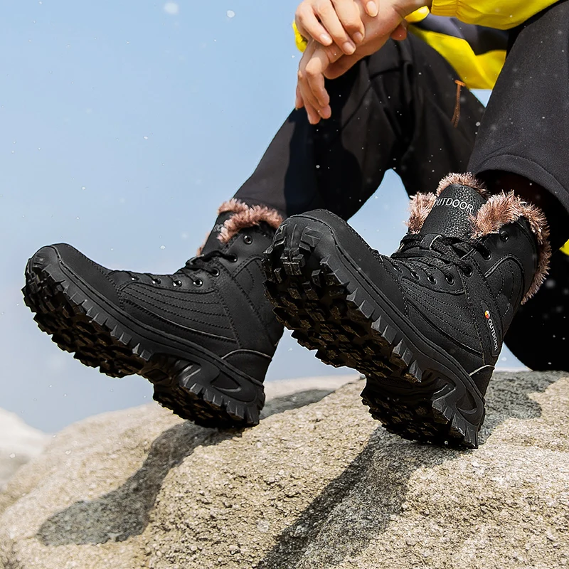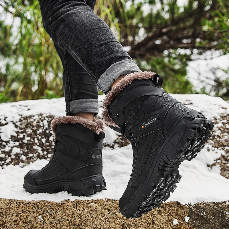 Мужские ботинки из натуральной кожи, зимние теплые ботинки на меху, мужская повседневная обувь, походные кроссовки, высокие ботинки, Уличная обувь