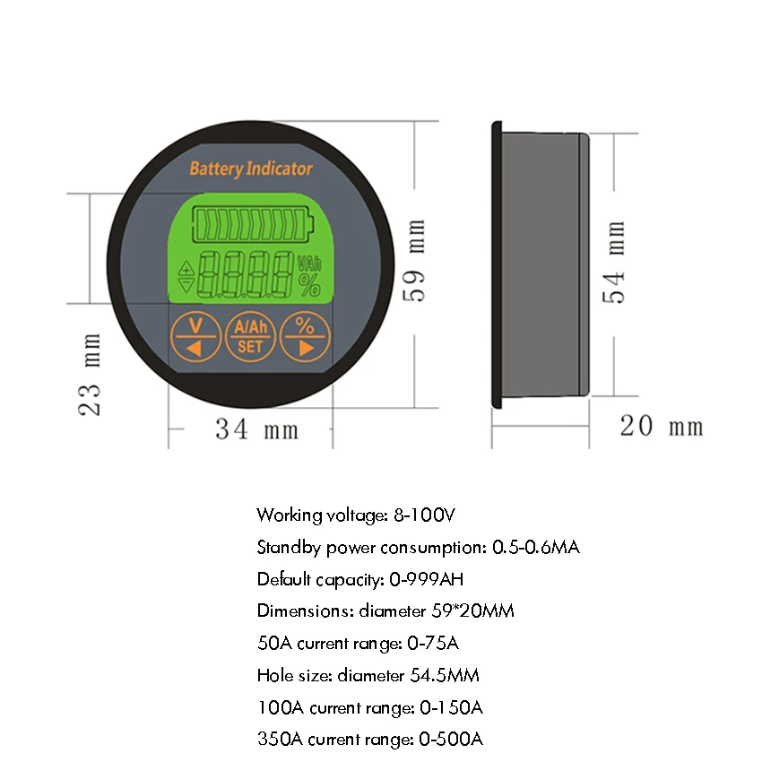 Новый DC 8-80V 50A 100A 350A TR16 кулоновый счетчик индикатор ампер...