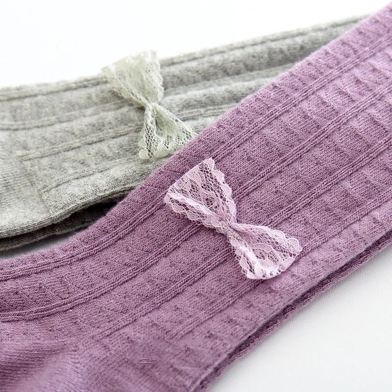 Мягкие хлопковые милые кружевные колготки с бантиками для маленьких девочек Новые Осенние Колготки для маленьких девочек, штаны, колготки для маленьких детей