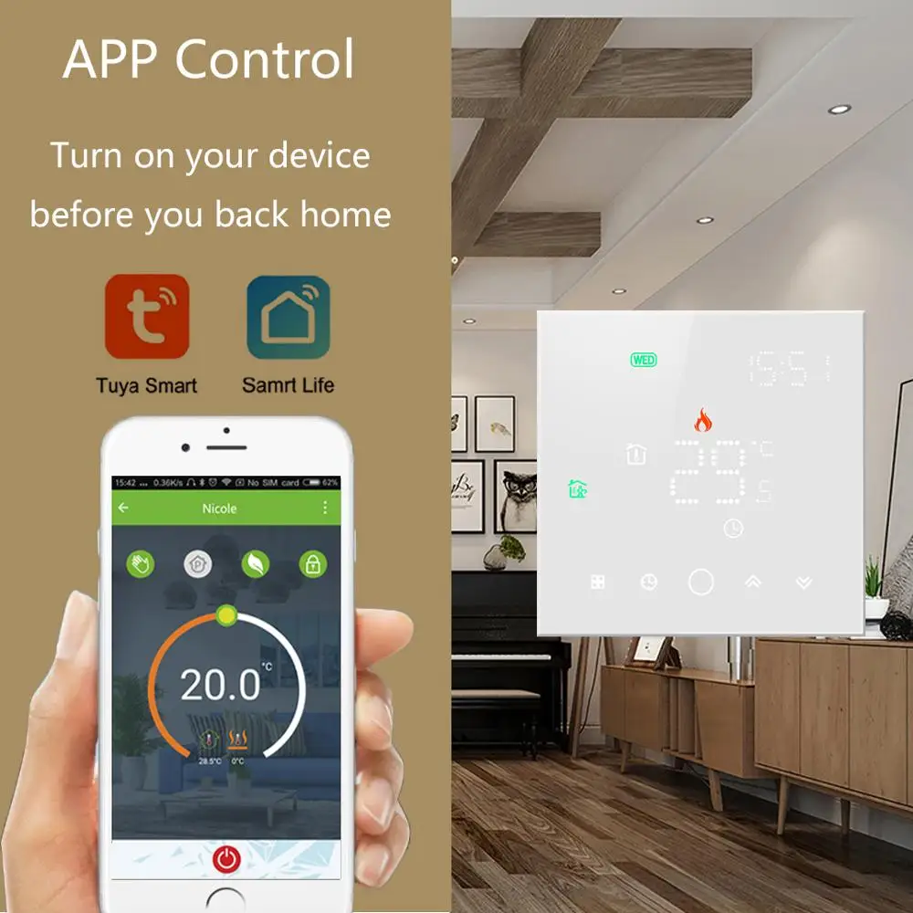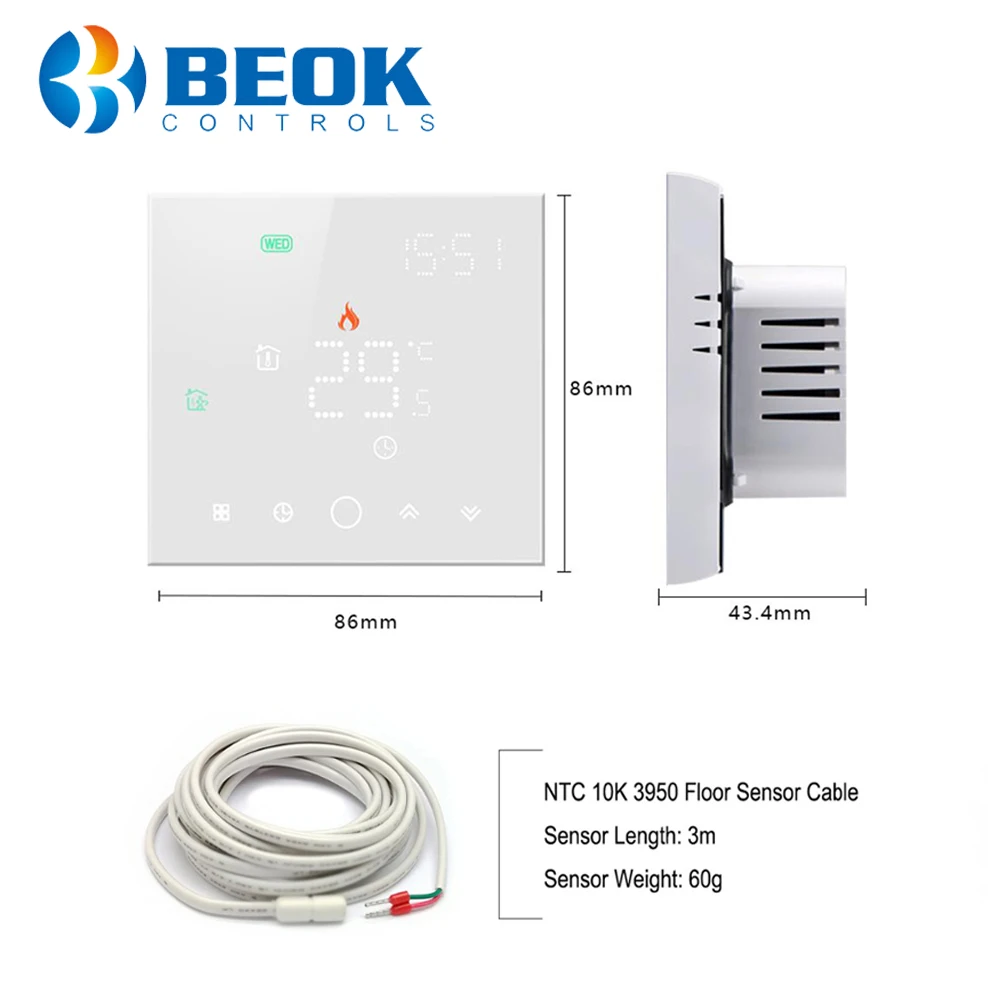 2 шт. Beok Wifi термостат для электрического напольного отопления домашний температурный контроллер для умной домашней работы с Alexa Tuya Google Home