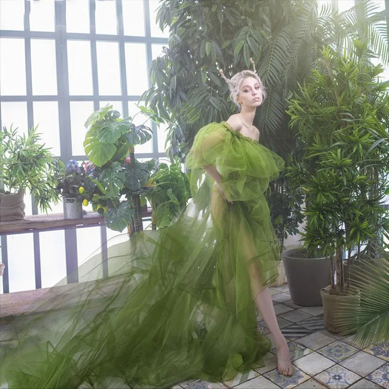 Женское платье для фотосессии, зеленое платье оливкового цвета, вечерние платья со шлейфом