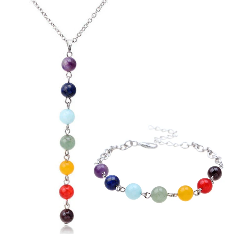 Набор женских ювелирных изделий 7 чакр для йоги, Исцеляющие радужные кристаллы рейки, серьги, браслет, ожерелья, подвески, натуральный драгоценный камень, бусины мала