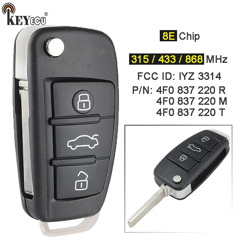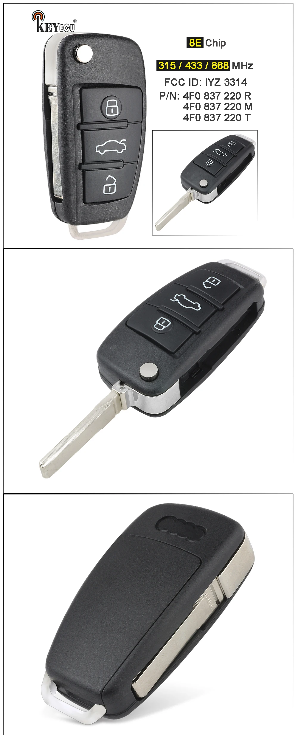 KEYECU 433 МГц 8E чип PN: 4F0837220R 4F0837220M 4F0837220T замена флип дистанционный ключ-брелок от машины для Audi A6 S6 Q7 2004-2015