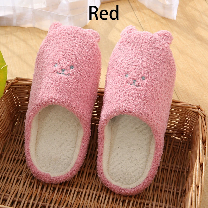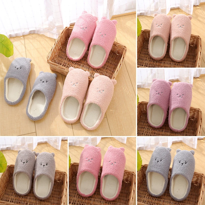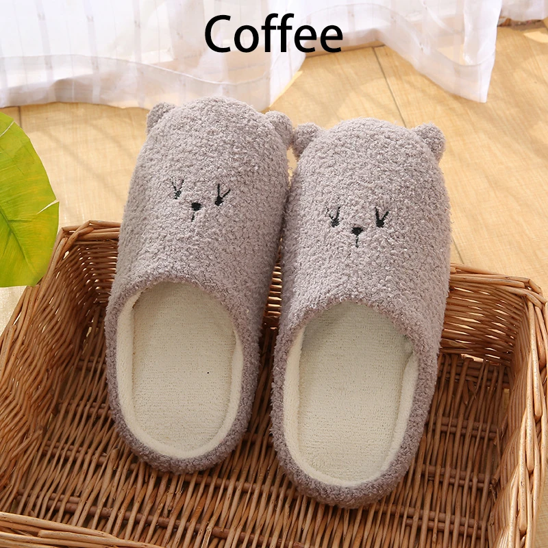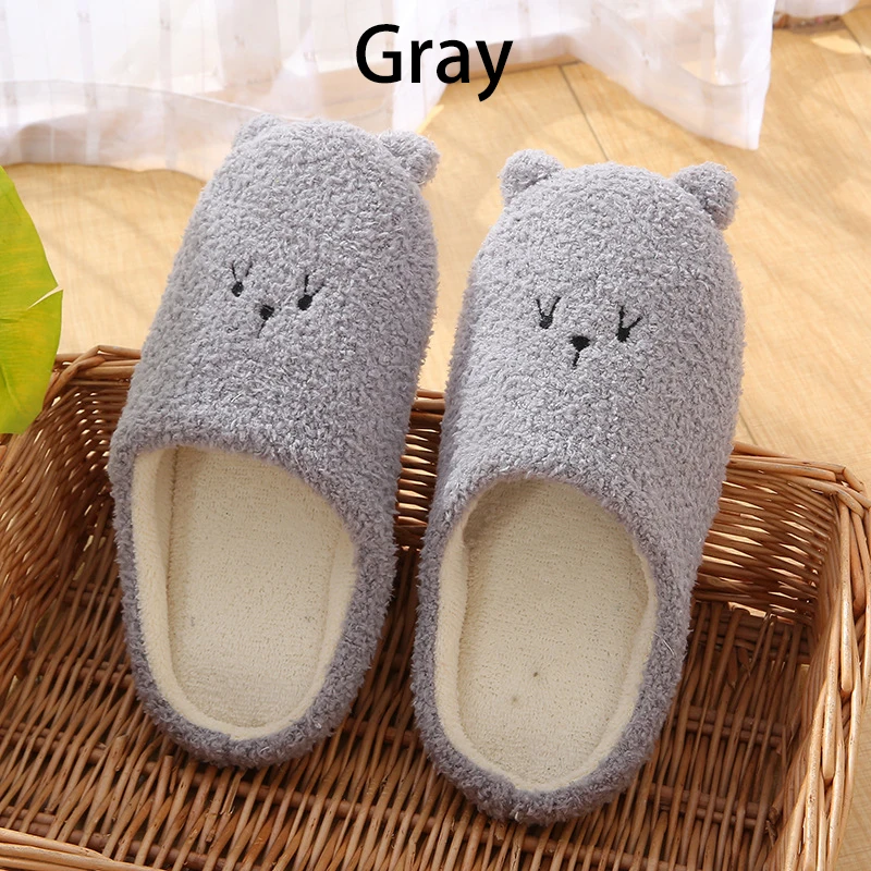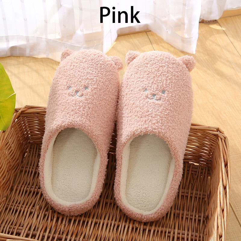 Тапки женские домашние плюшевые, мягкие хлопковые тапочки с симпатичным медведем, Нескользящие, сланцы для пола, теплые шлепанцы для спальни