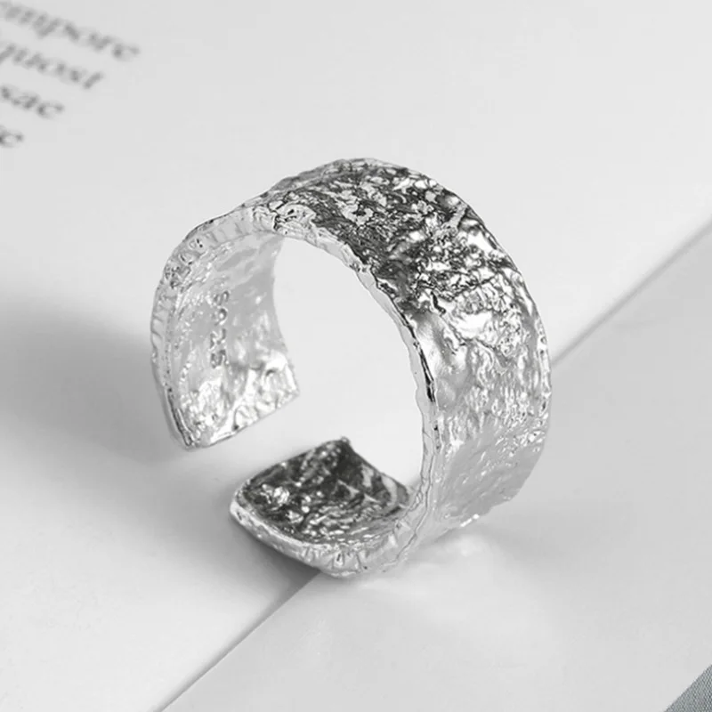 Кольцо женское из серебра 925 пробы, с матовой поверхностью, эллипс, регулируемый размер, ручной работы, из серебра 925 пробы