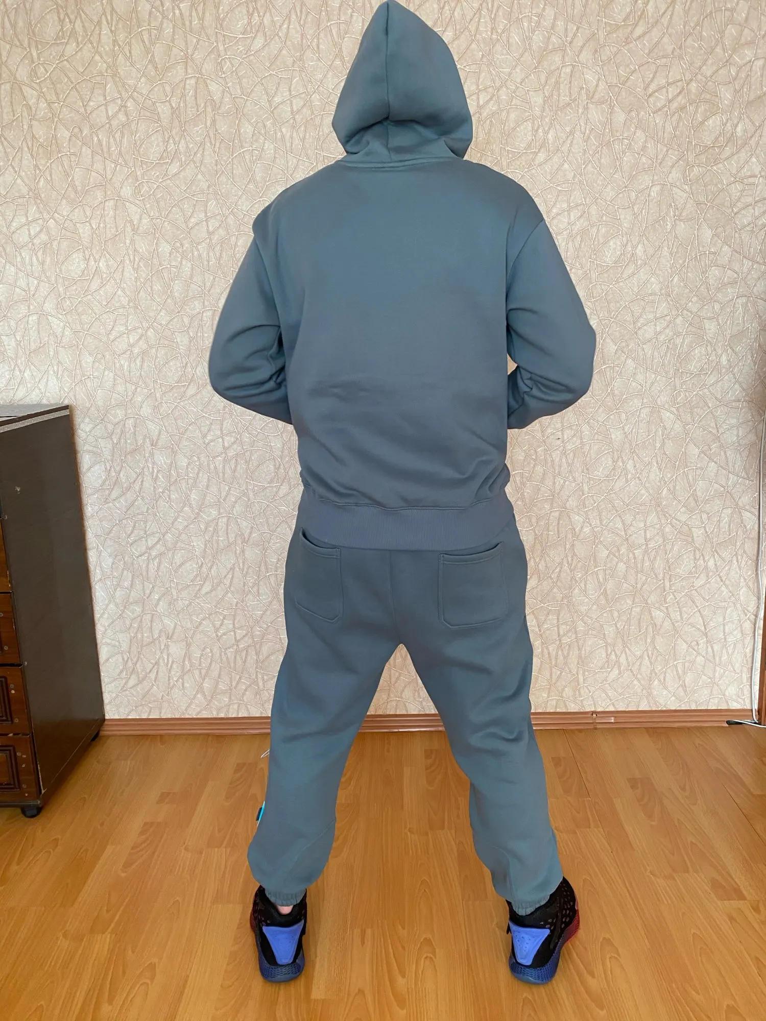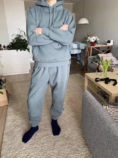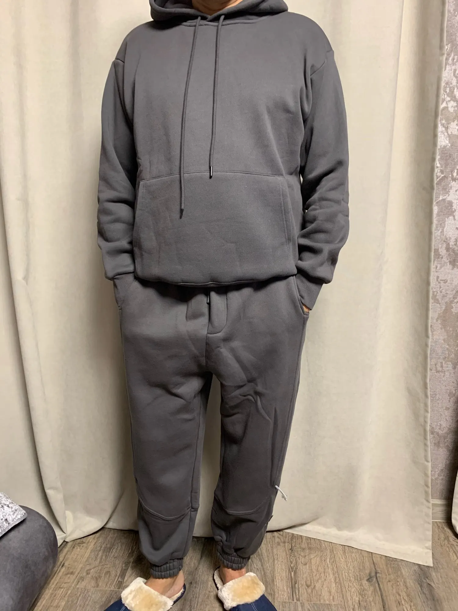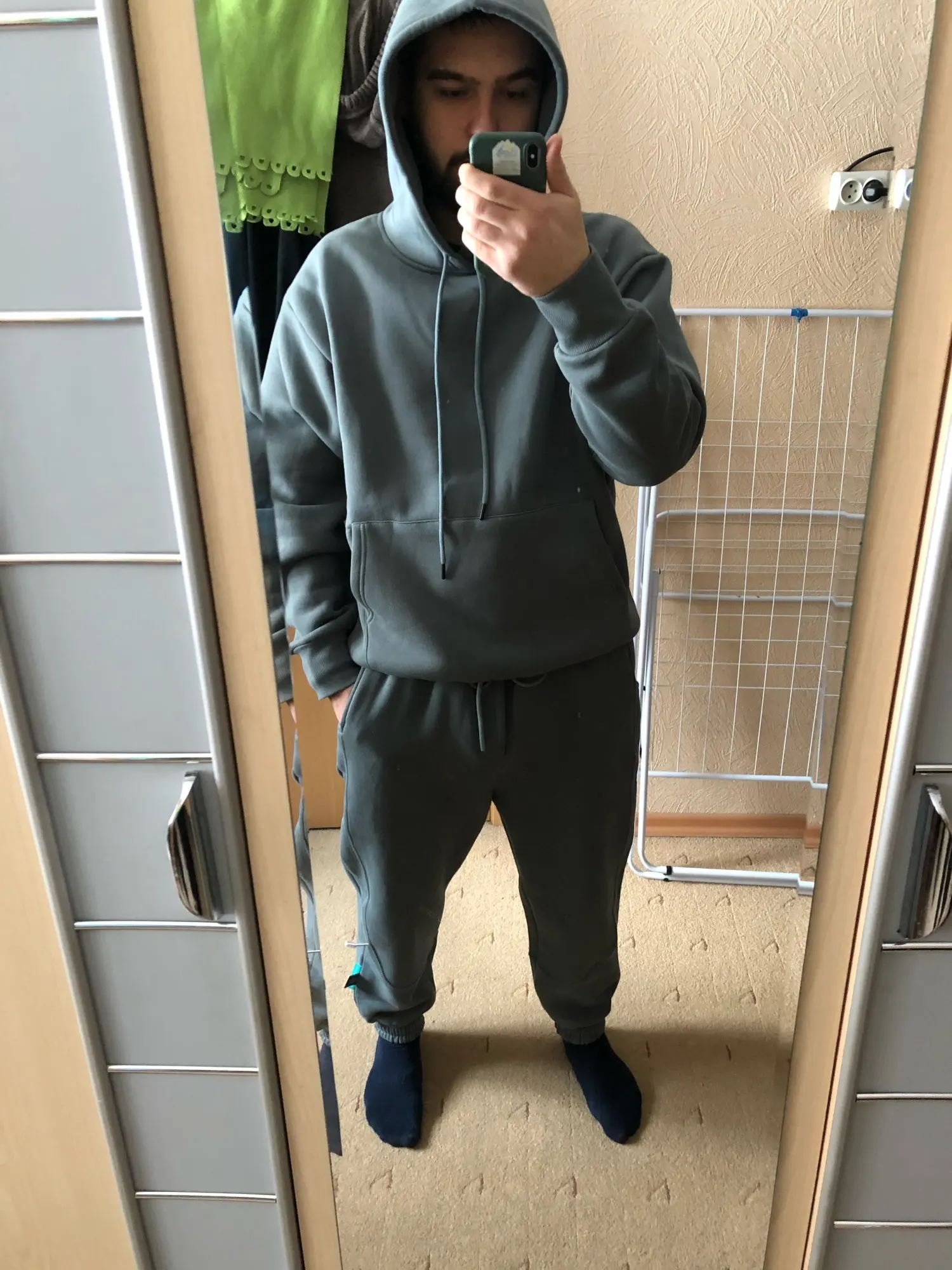 костюм пришёл очень быстро, за 1.5 недели до Москвы, по совету продавца заказал размер М, на параметры ог100 от88 об 104 рост 173 см подошёл идеально, не в обтяг, в меру свободно. Длина брюк в самый раз, без запаса. Качество отличное, все строчки ровные, нитки не торчат, запаха нет. И худи и штаны тёплые на флисе, удобные. фото цвет не передаёт, в реале он голубосерый. Рекомендую! Спасибо!