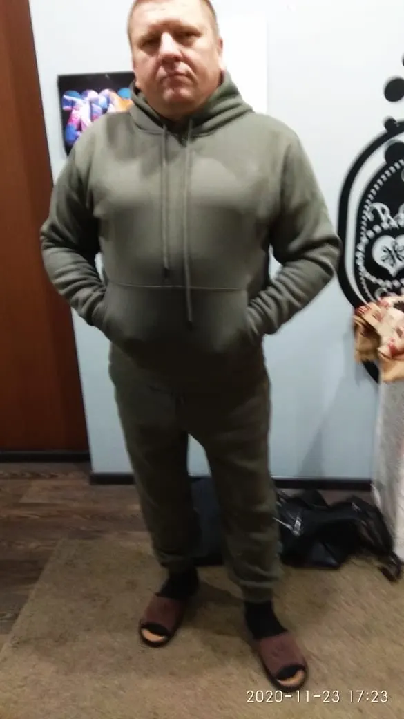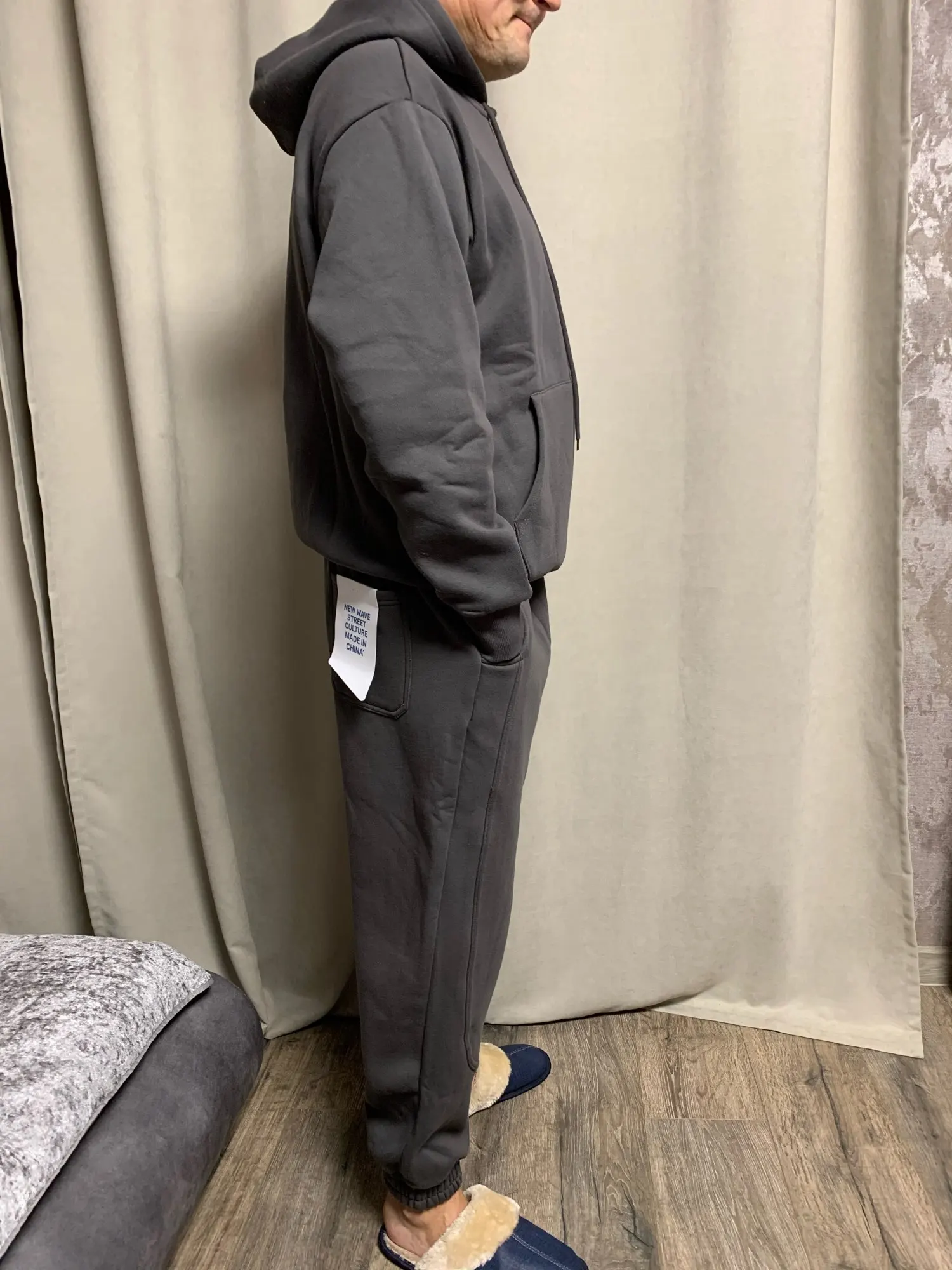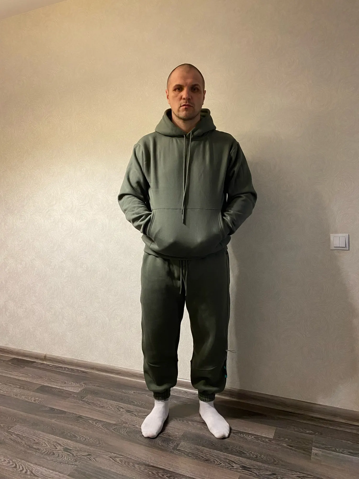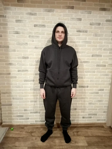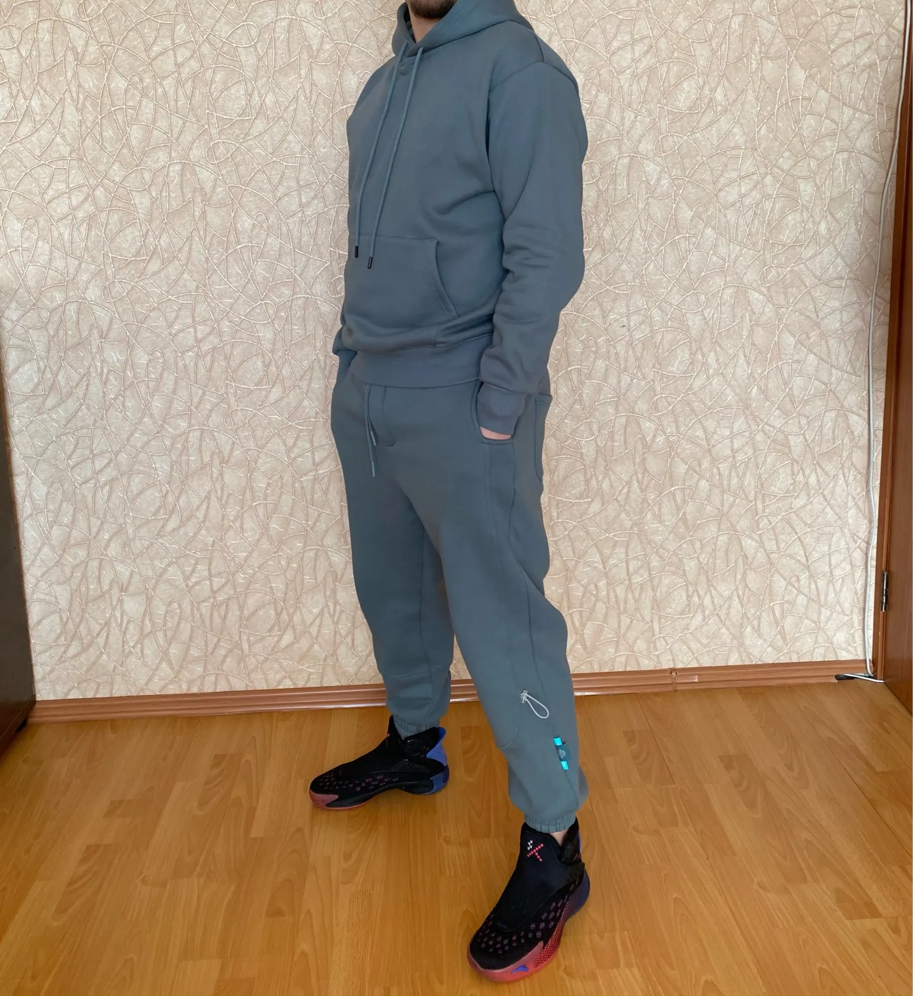 Костюм пришёл за две недели на кассу Пяторочки. На мужчину ростом 170, среднего телосложения размер М сел хорошо, толстовку можно было взять и L. Особенно хочется отметить высокое качество костюма, он плотный и тёплый, состав 51 % хлопок и 49 % полиэстер.