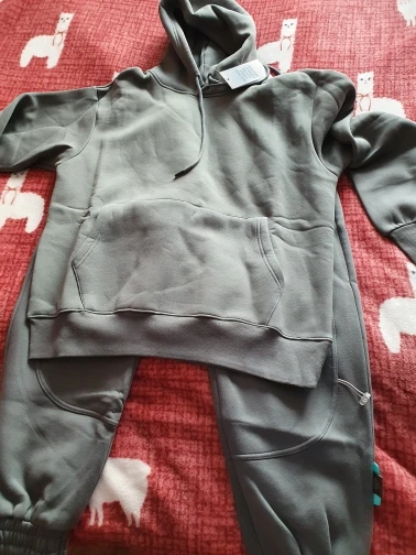 Офигеннейший костюм) Любовь с первой примерки! Качество улёт , на ощупь мягкий и приятный) на рост 176, женский русский размер 44 взяла толстовку в размере XXL, что бы была огромная прям, она оверсайз, но не огромная. Рукава очень длинные, если брать как обычную толстовку не удлиненную, то подойдёт на рост на много выше. Заказала 11.11 получила 21.11