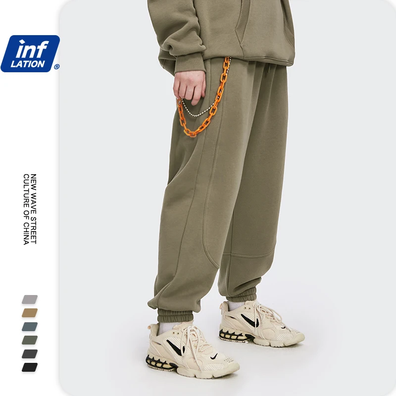 Мужской однотонный спортивный костюм INFLATION, теплый флисовый комплект с толстовкой и штанами, унисекс, зима 2021