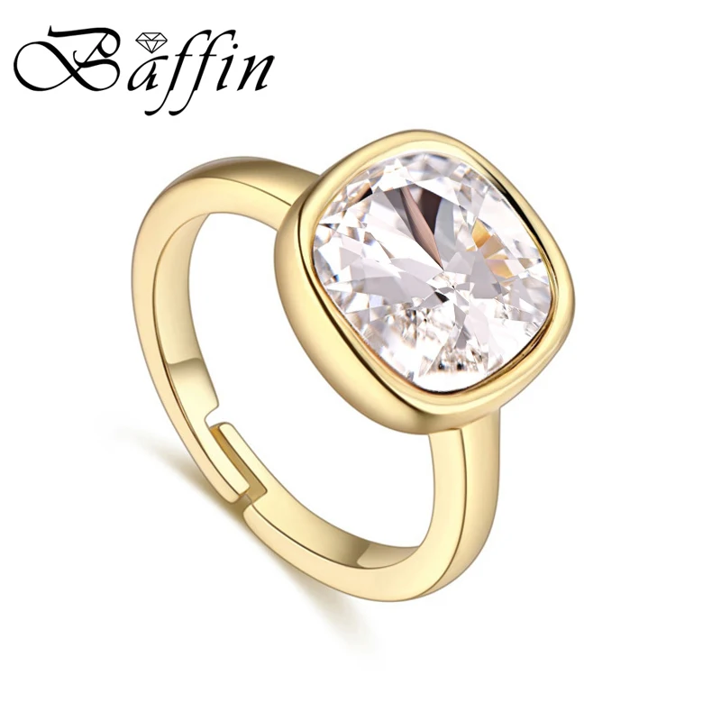 Модные кольца золотого цвета с кристаллами Сваровски, элегантные женские кольца с квадратными камнями вечерние ном стиле, Подарочная бижутерия