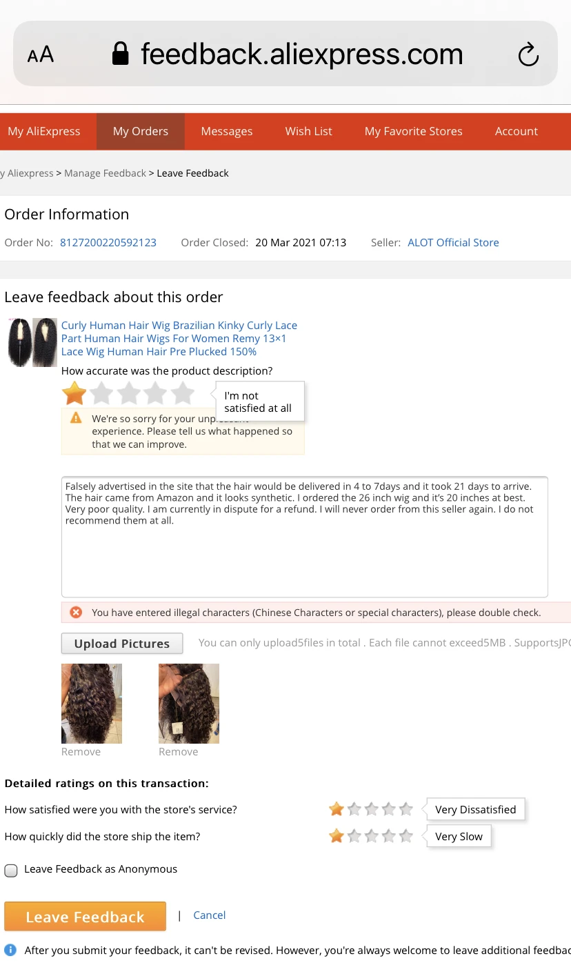 Ложно рекламируется на сайте, что волосы будут доставлены в течение четырех-семи дней, и на доставку ушло 20 дней. Волосы получены из другого источника и выглядят синтетически. Я заказал 20 шесть дюймов, и было в лучшем случае 20.