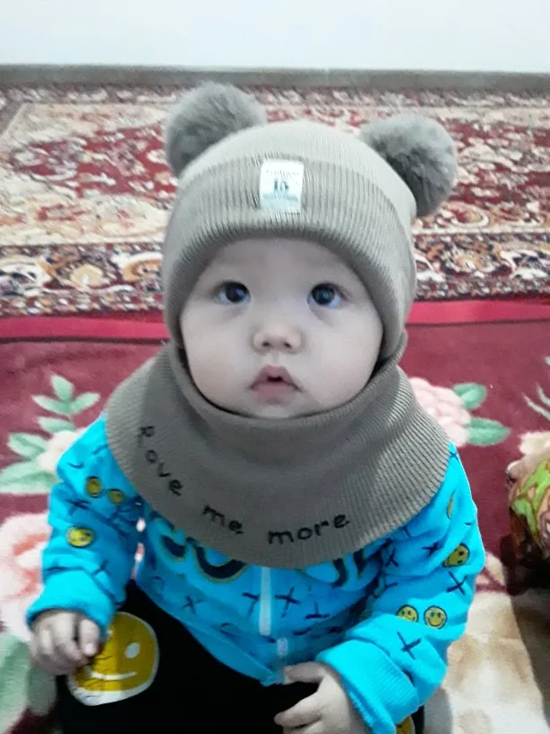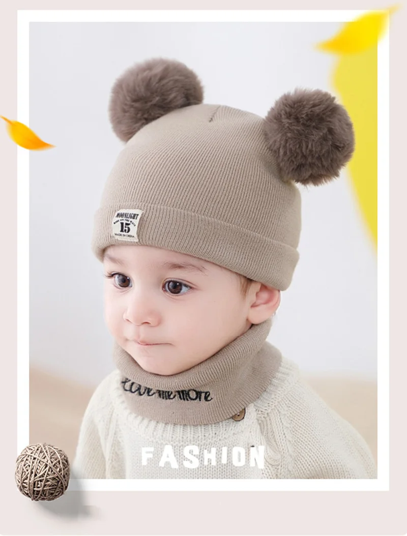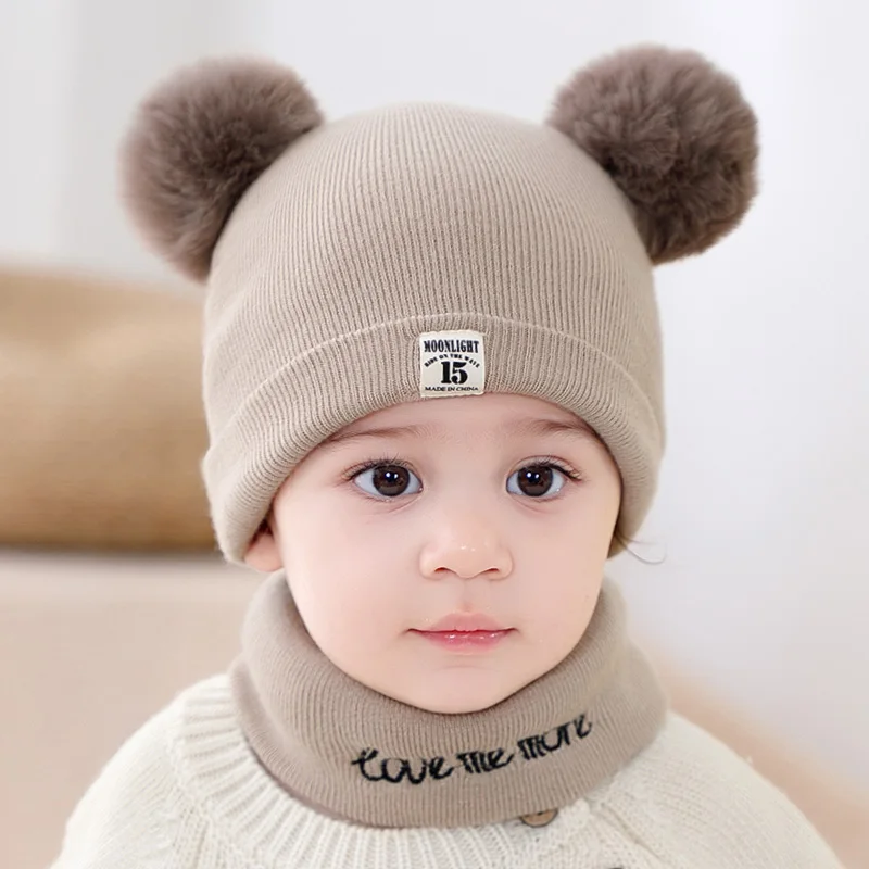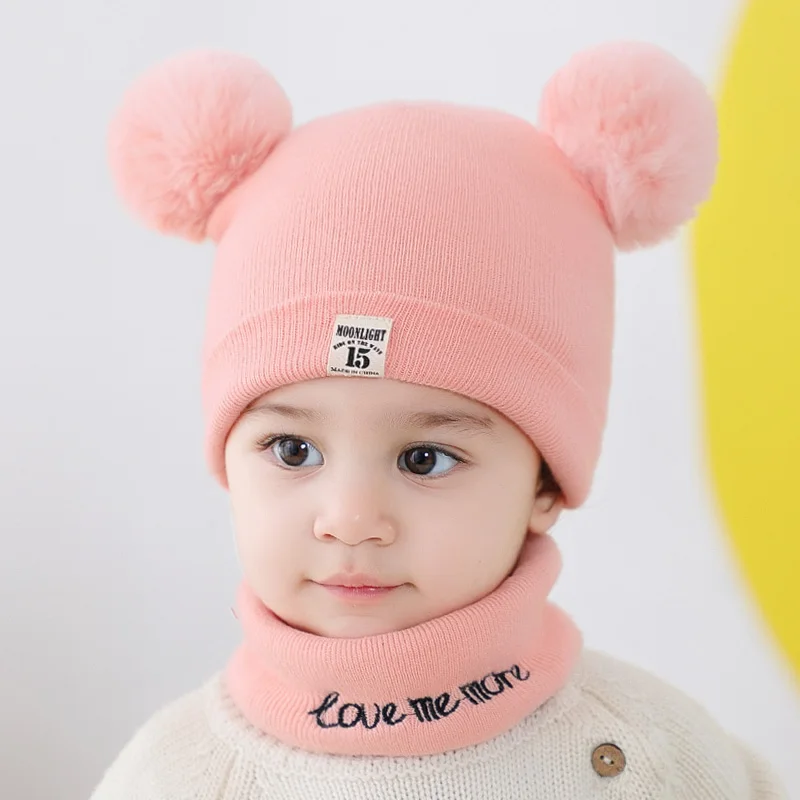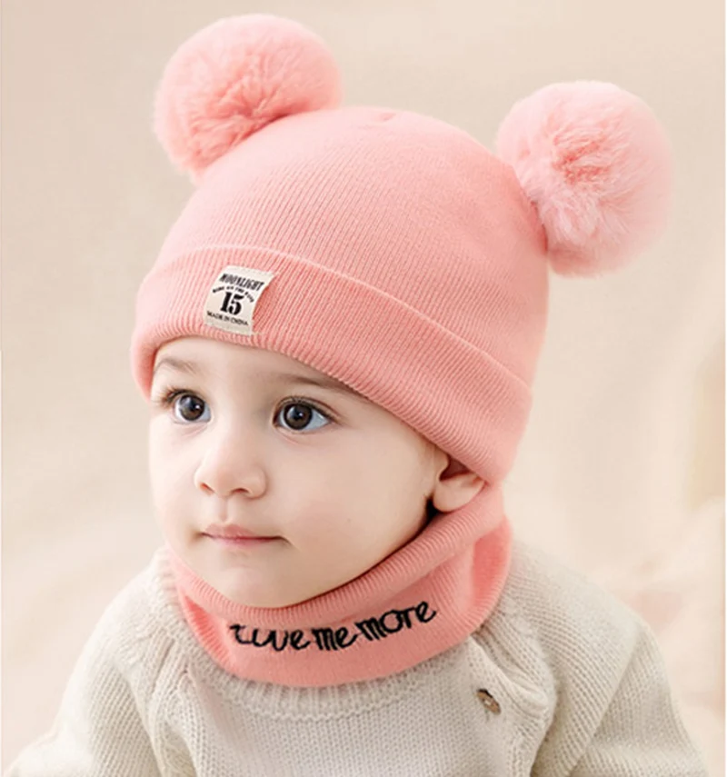 2 шт., зимняя Милая шапка с помпоном с пушистым помпоном для мальчиков и девочек, осенняя однотонная теплая шапочка для новорожденных мальчиков, эластичный шарф, костюм