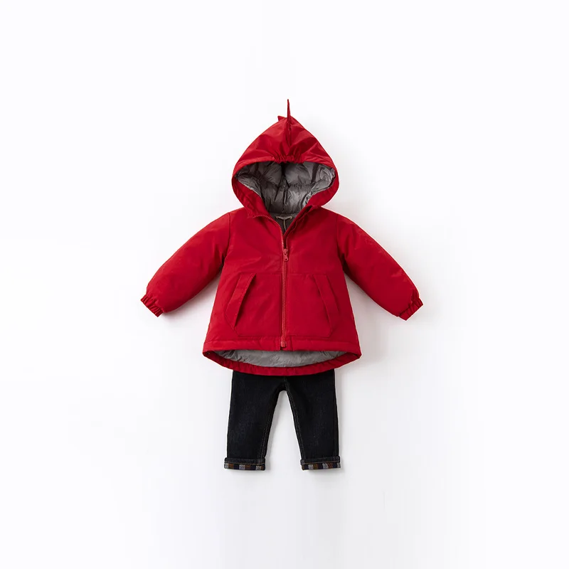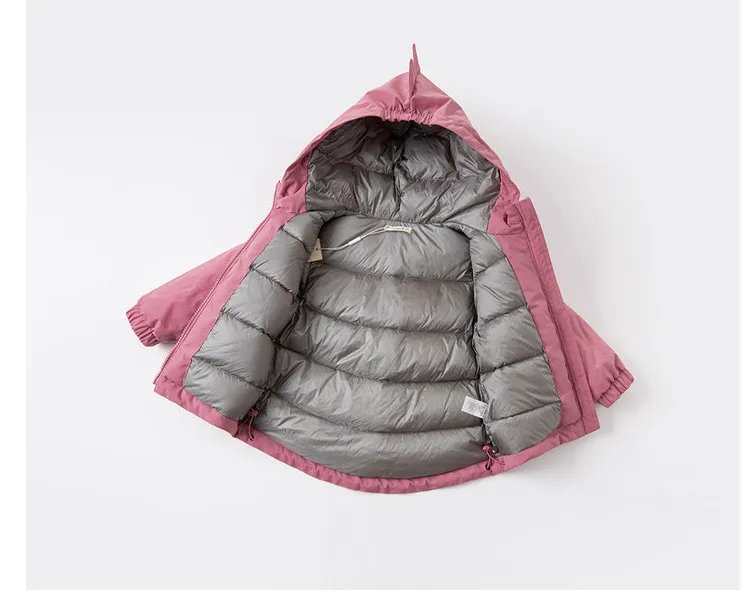 Детский пуховик с капюшоном, на молнии, DB16594, зимний, унисекс, на 90% утином пуху