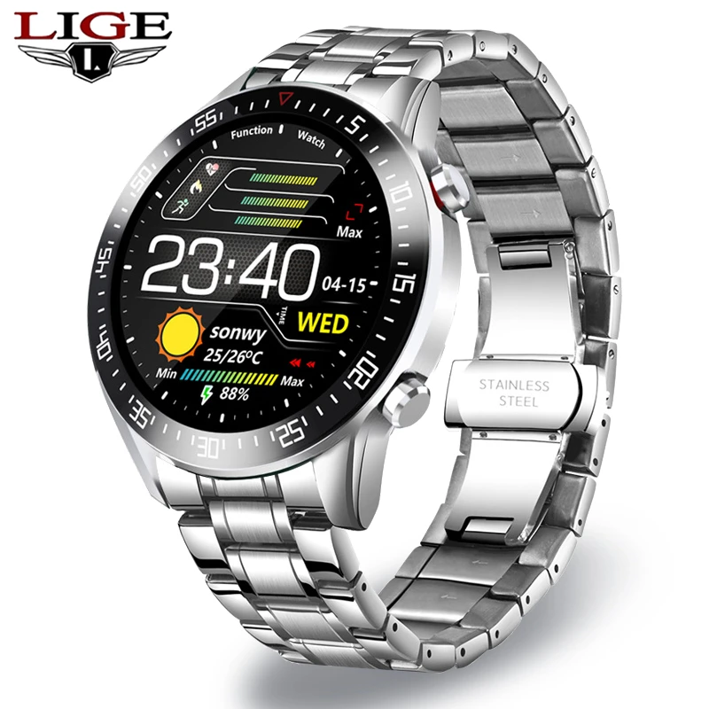 LIGE 2021 Новый сталь Смарт часы для мужчин для Android IOS Телефон...