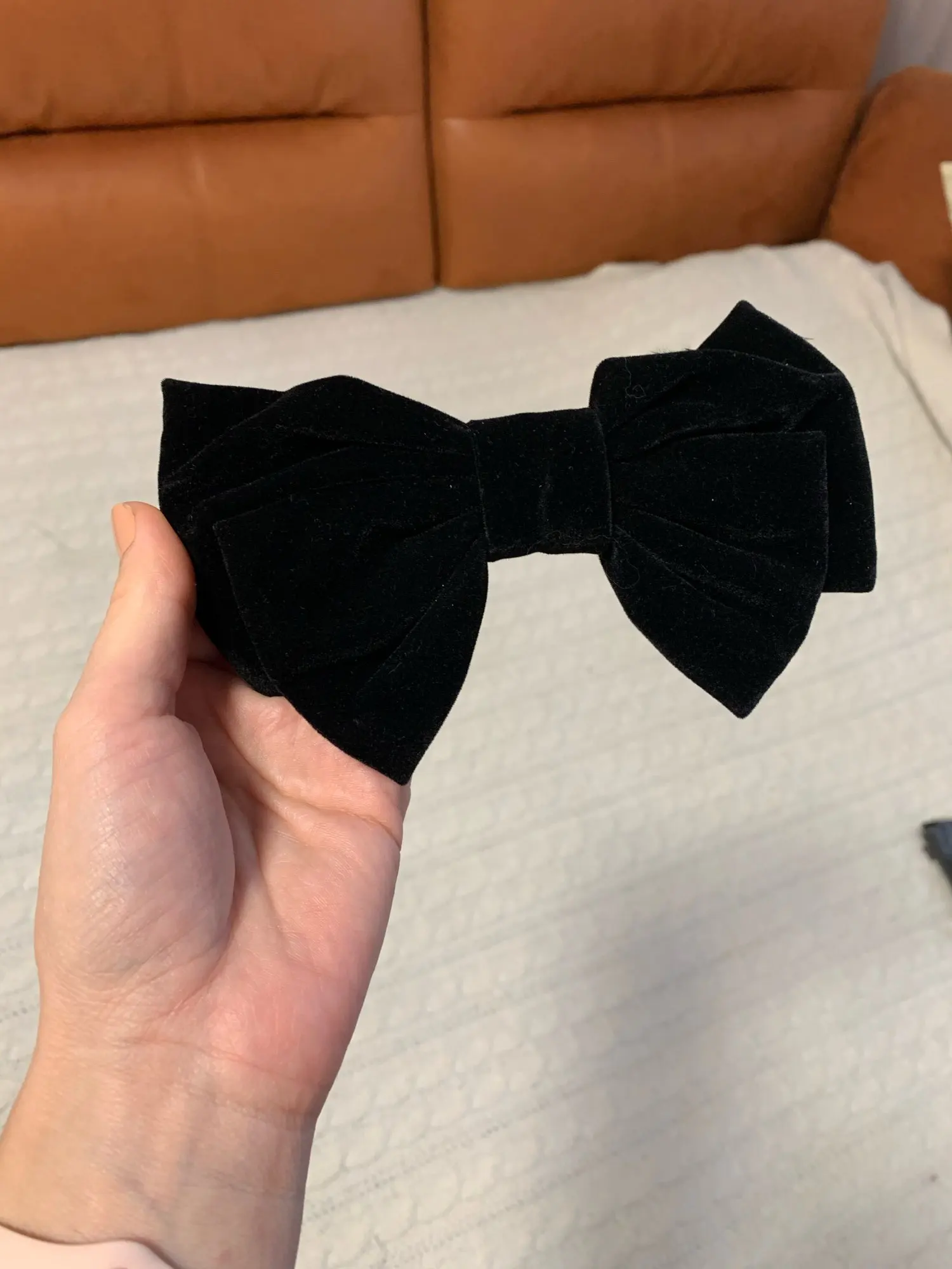 Смотрится я думаю, не плохо! Приятный бантик, бархатистый, волосы не цепляет, держит достаточно хорошо мои волосы( не тяжёлые волосы). При заказе не заметила размер, думала, что побольше будет, но и так не плохо. Продавец быстро отправил бант, пришло за 10 дней примерно.