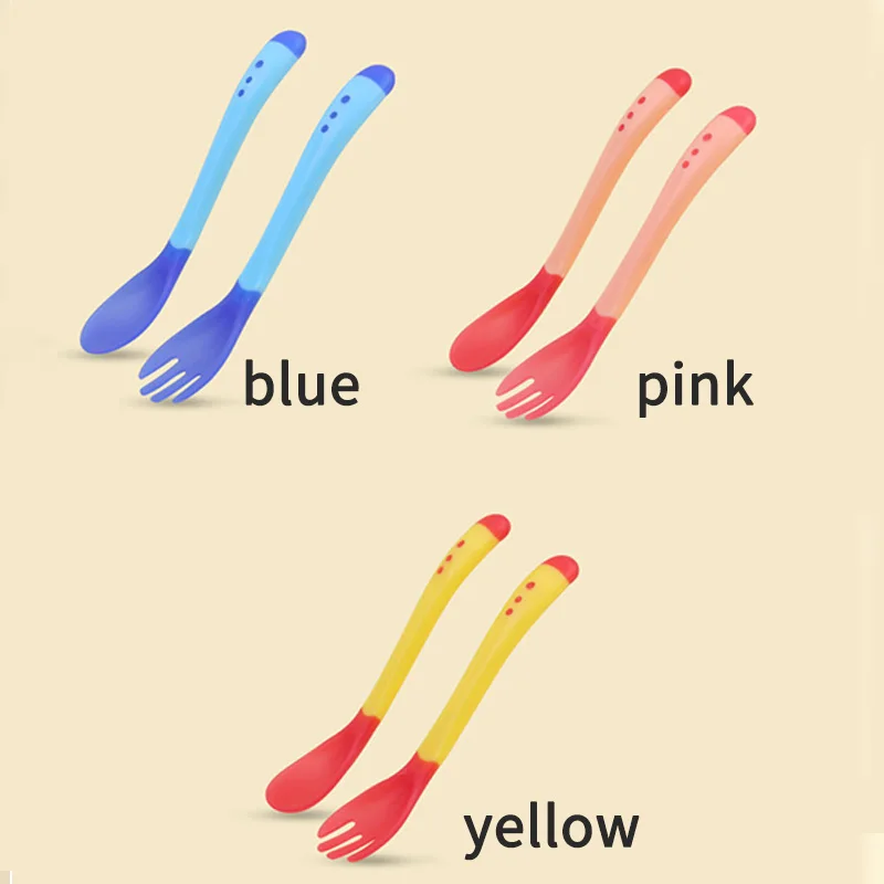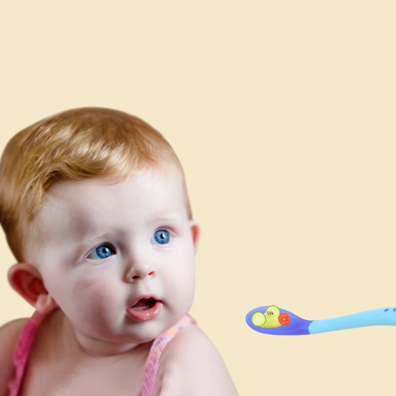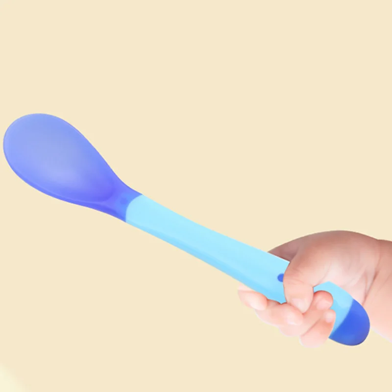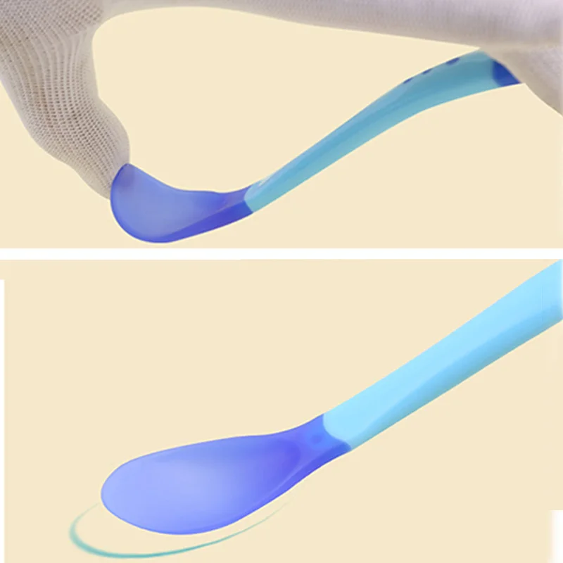 Детская обучающая ложка Нескользящая безопасная ложка для кормления с датчиком температуры, ложка для детской посуды, Мягкая силиконовая ложка, вспомогательное средство для кормления