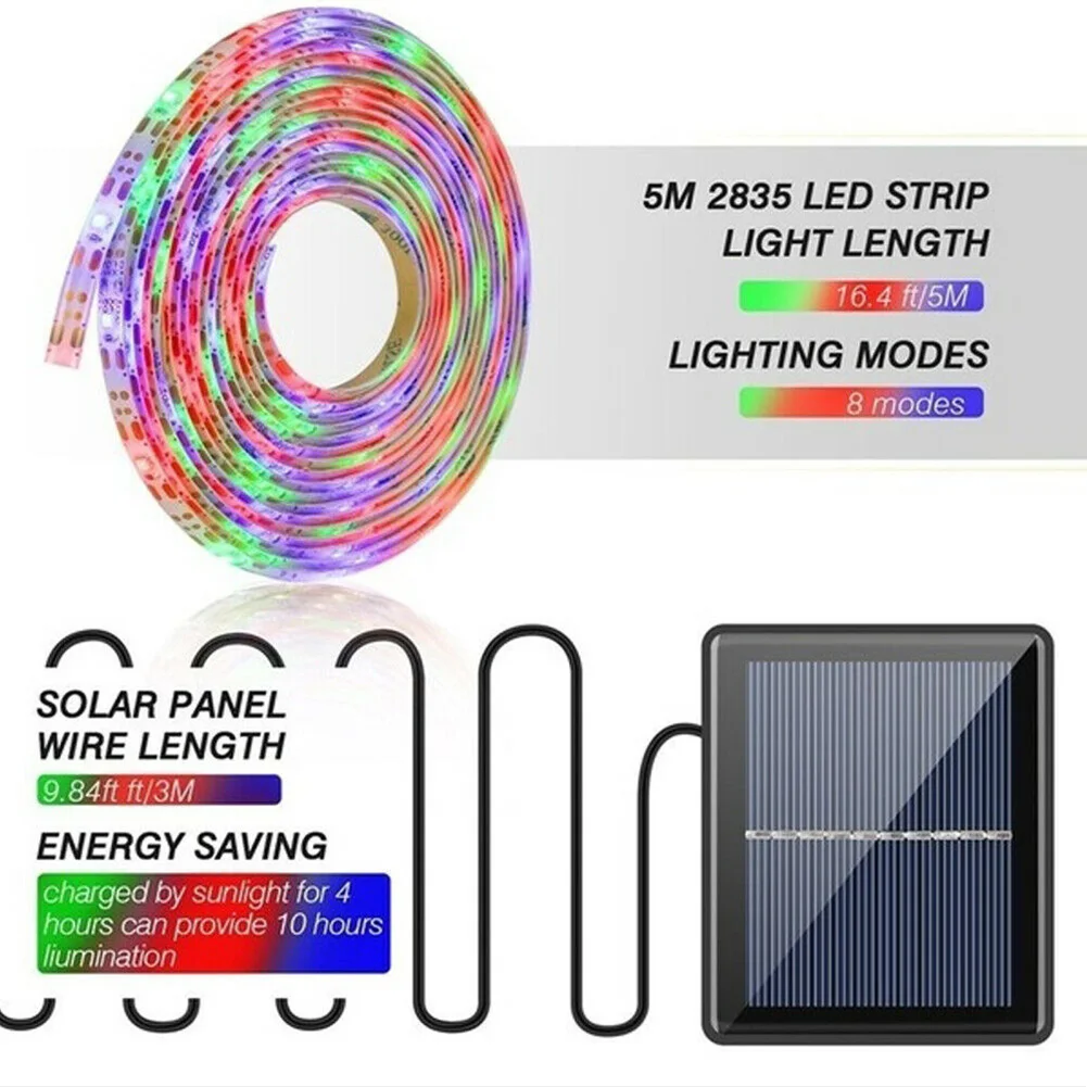 Гибкая светодиодная ленсветильник на солнечной батарее для освещения газона, улицы, поверхностного монтажа, 2835