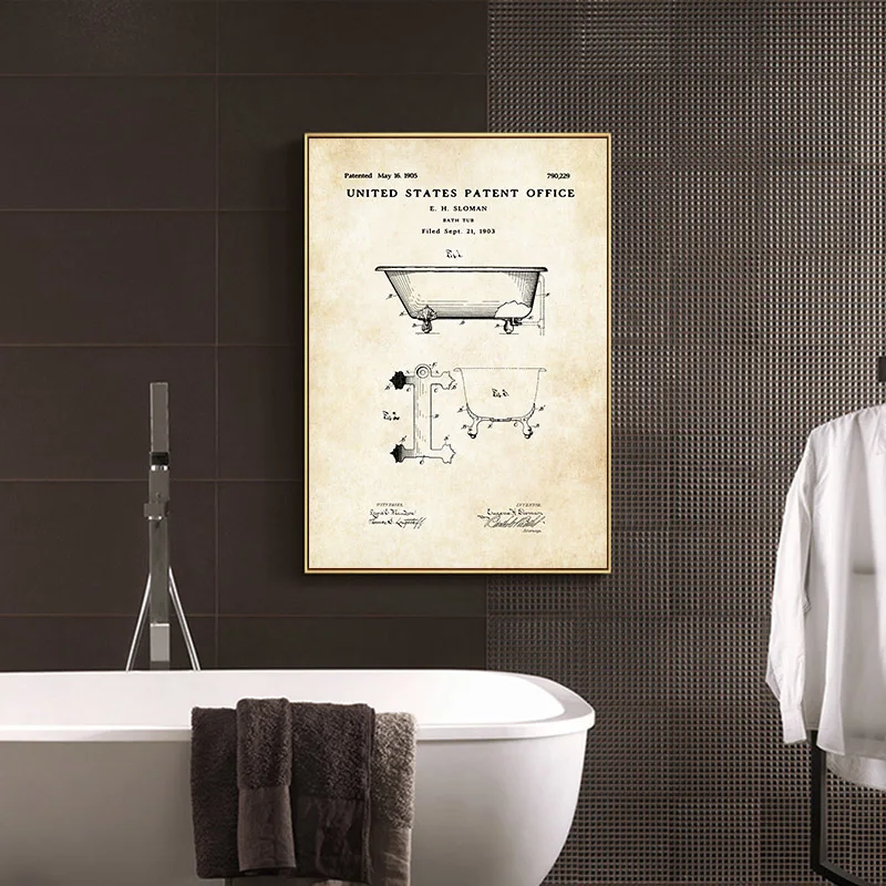 Туалетная бумага с зубной пастой в промышленном стиле, патентный плакат, винтажная Печать на холсте, настенная живопись, Современное украшение для ванной комнаты