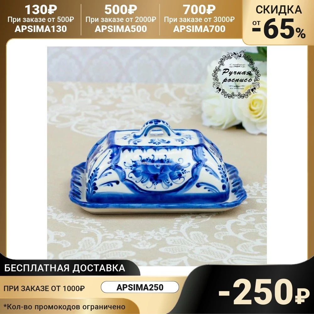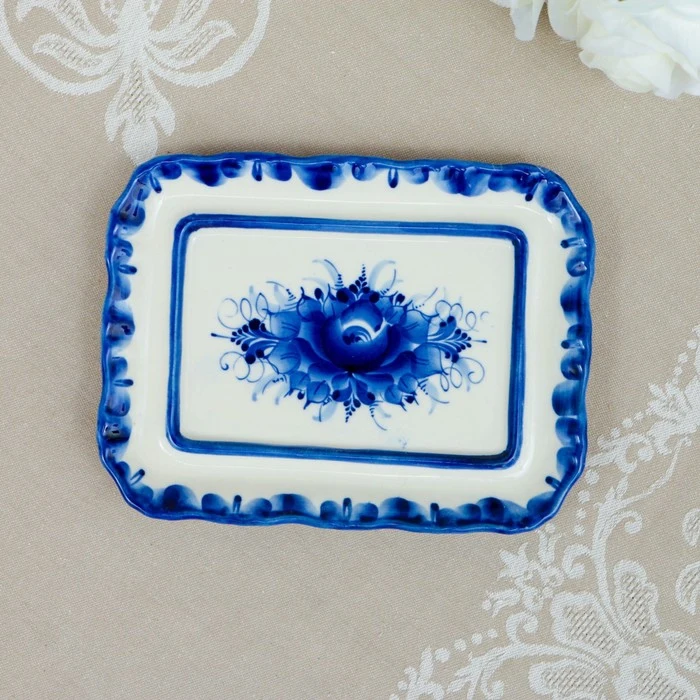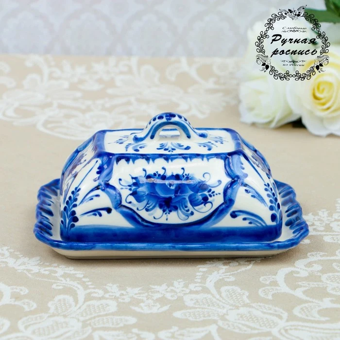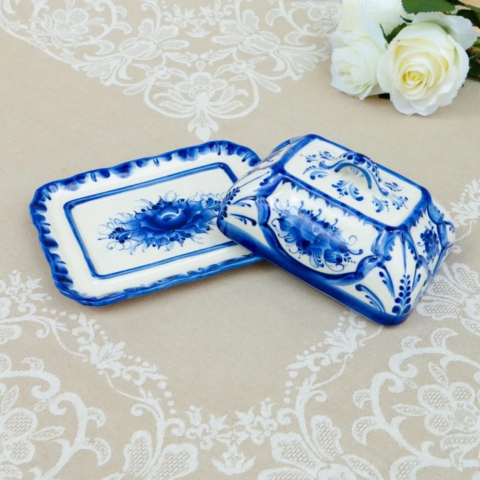 Масленка прямоугольная, гжель, фарфор, 12х18 см 4177656