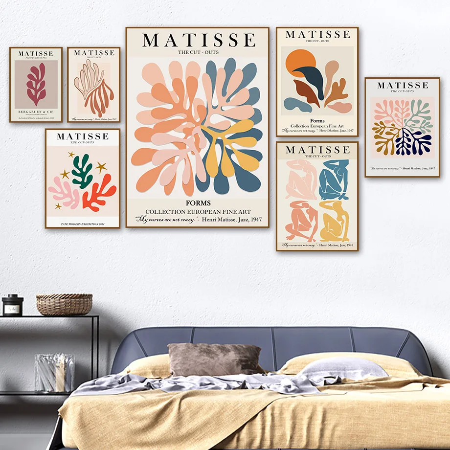 Настенная картина Matisse с изгибами красочных листьев и абстрактной девушкой, настенные картины на холсте в скандинавском стиле, настенные картины для декора гостиной