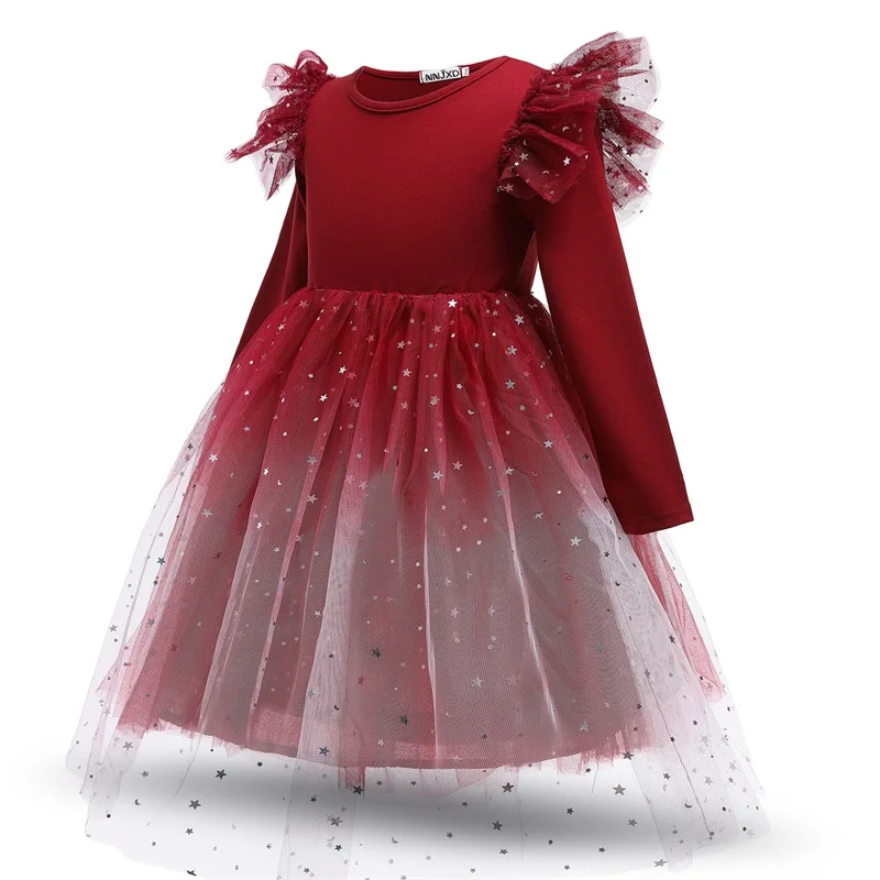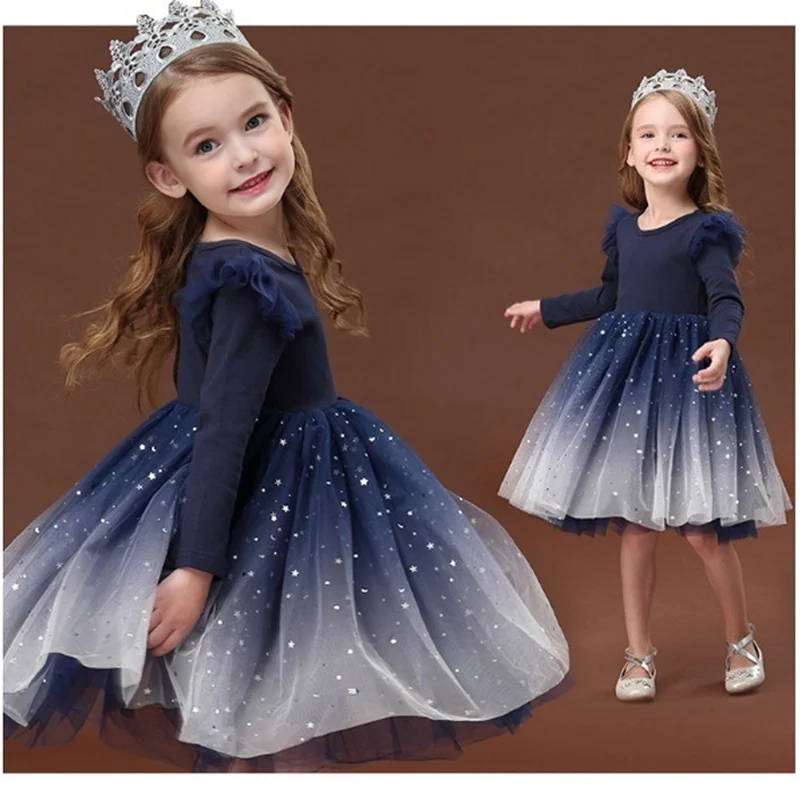 Платье для девочек, официальный костюм принцессы с длинным рукавом, весеннее платье для девочек, платье для выпускного, детская повседневная одежда