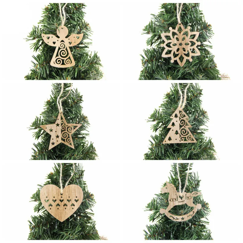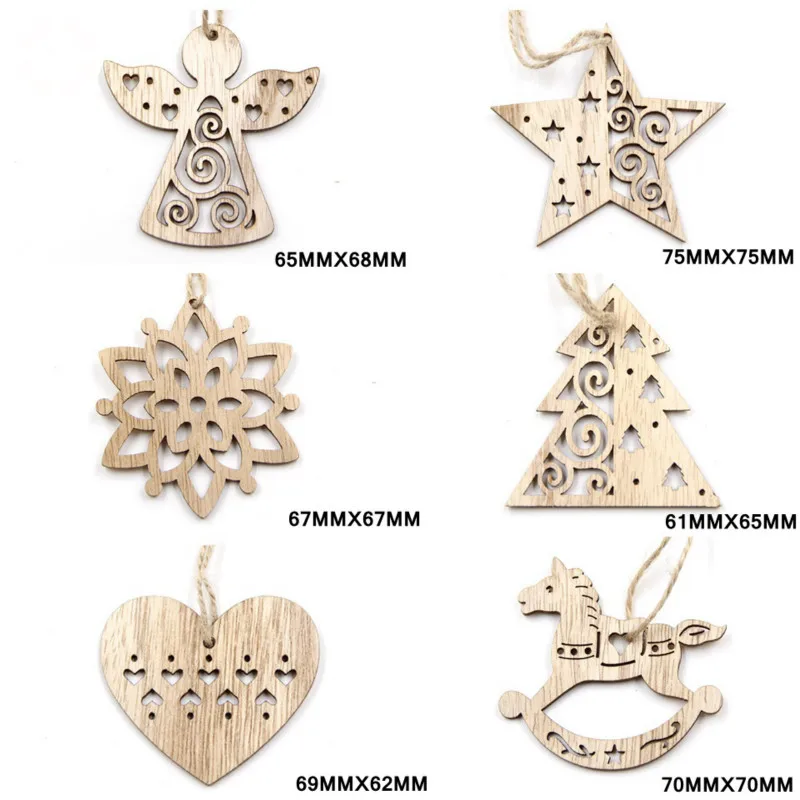 6 шт. DIY деревянные елочные игрушки предметы для рождественских по...