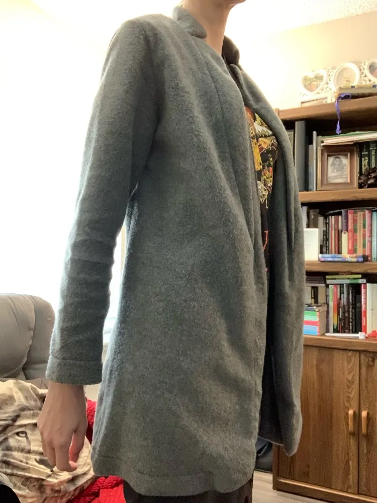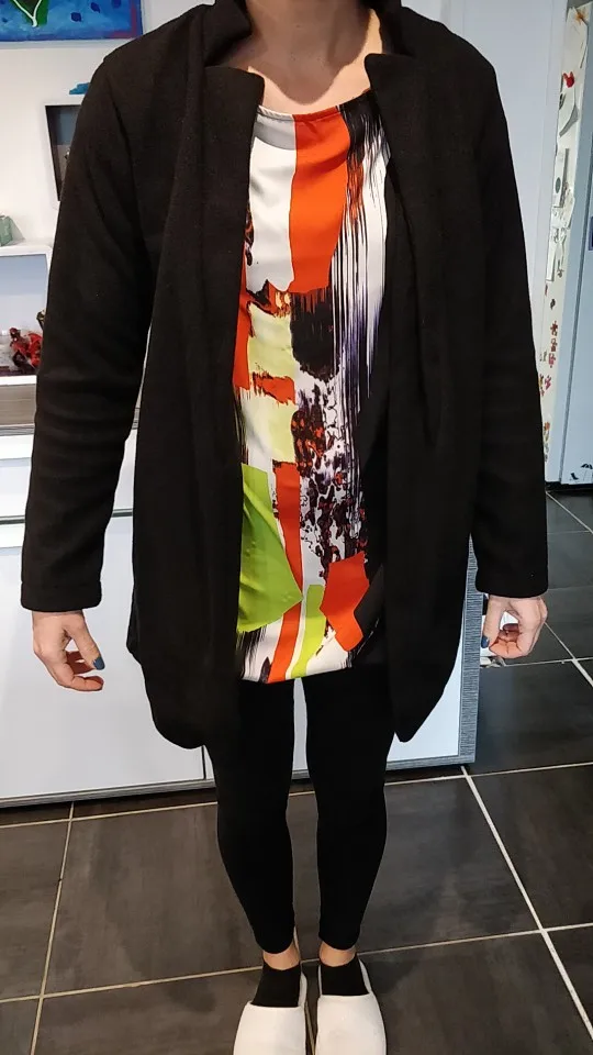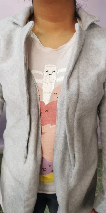Плохо сшитое изделие. Некрасиво без формы. Выглядит как куртка, чтобы оставаться в пижаме под пуховым одеялом. Он находится в светлой полярности.
