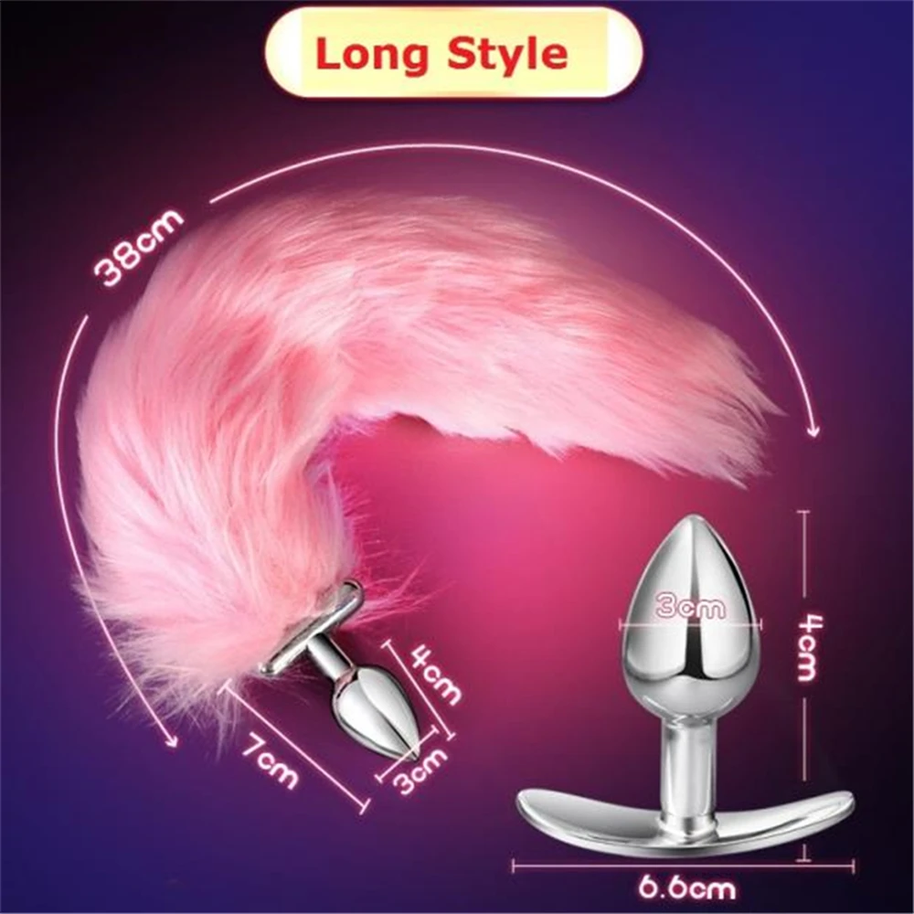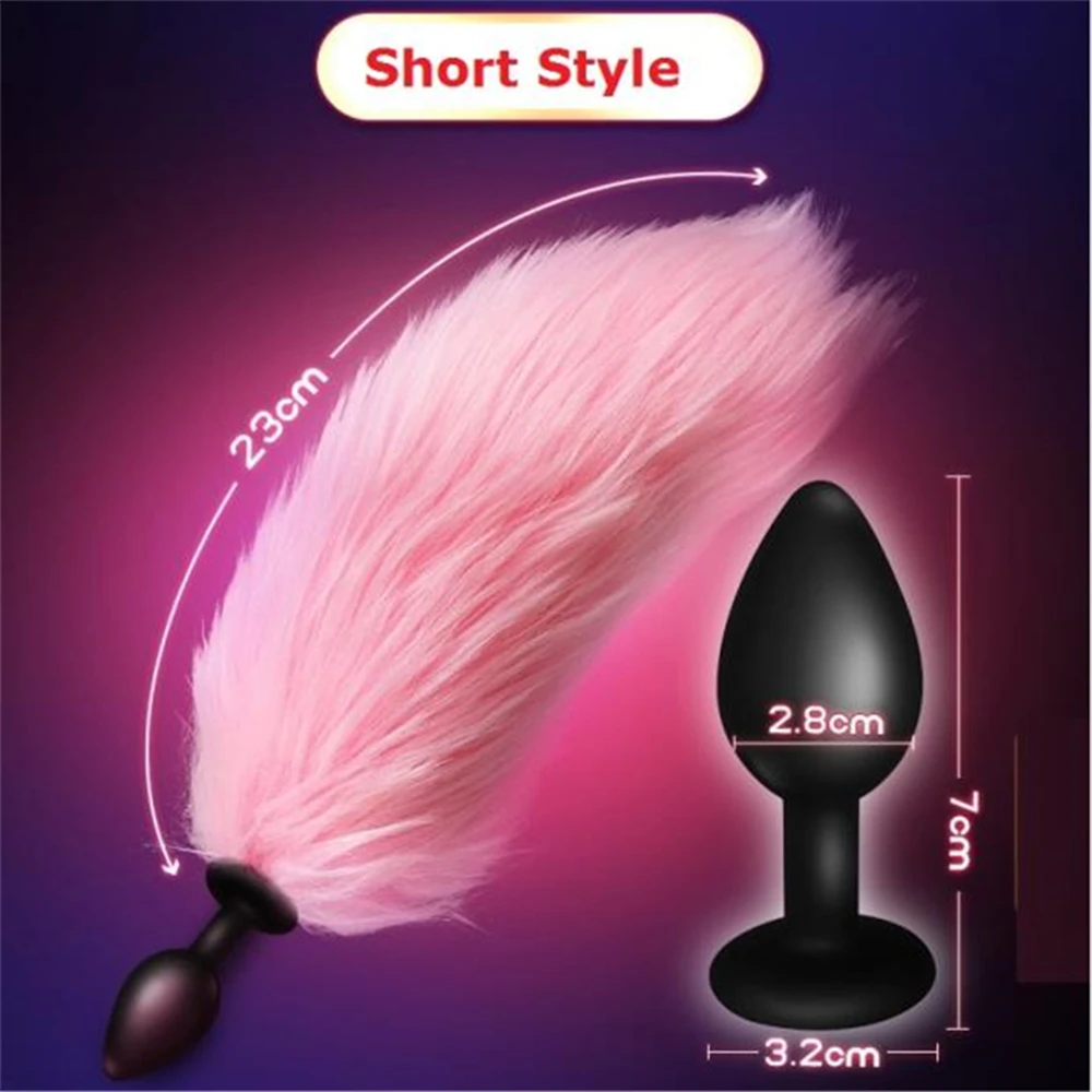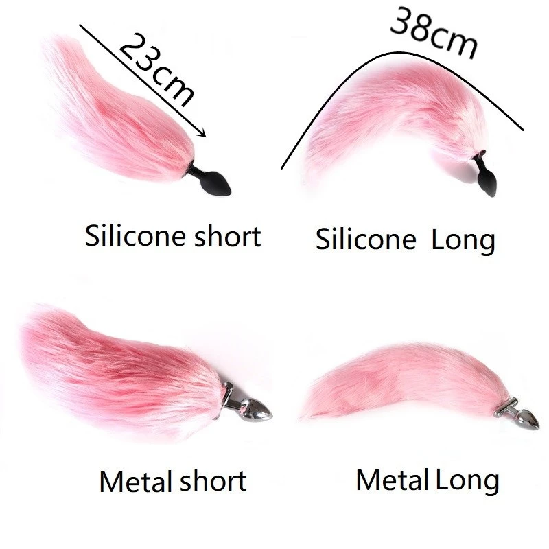 Характеристика:Это отличный подарок для пар и близких.2 разных длины хвостаДлинный тип: длина хвоста около 380 ммКороткий тип: длина хвоста около 230 мм2 разных разъема:Металлический Серебряный штекер: размер около 66*40*30 ммСиликоновая черная вилка: размер около 32*70*28 мм3 цвета:Розовый/синий/белый