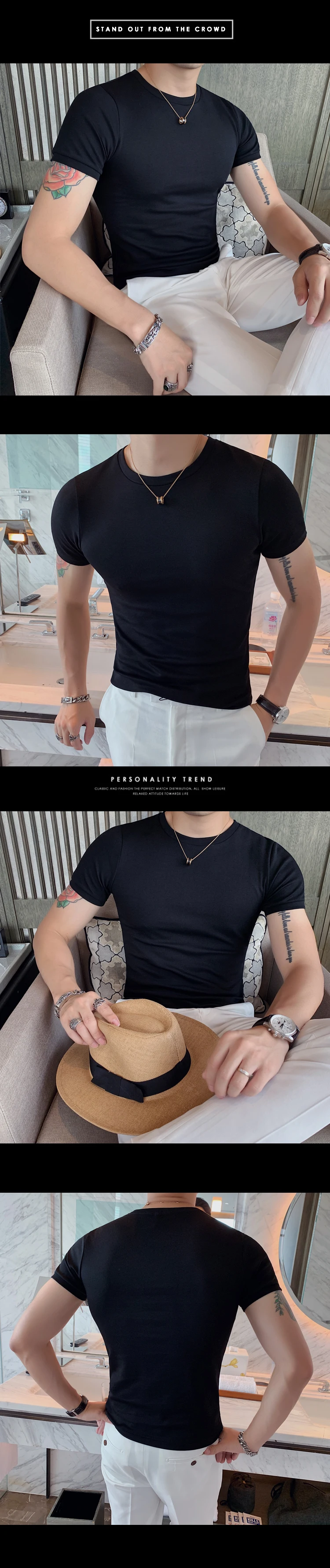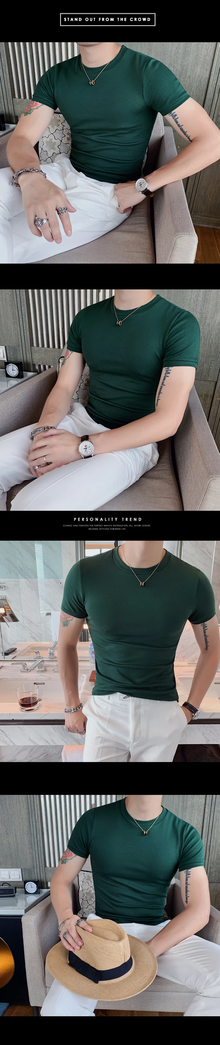 Британский Стиль Мода 2021 летние футболки с коротким рукавом для мужчин, одноцветная одежда универсальные хлопковая Приталенная футболка Homme 3XL-M