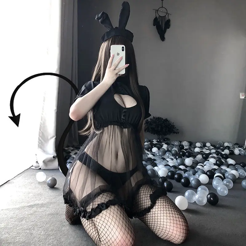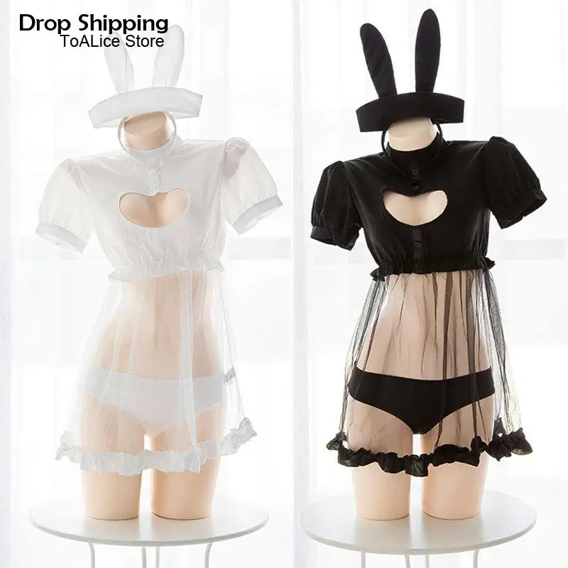 Сексуальный Банни маскарадный костюм для девочек, эротическое белье, комплект одежды для женщин, аниме, Открытая грудь, милое нижнее белье с кроличьим хвостом, секс подарок